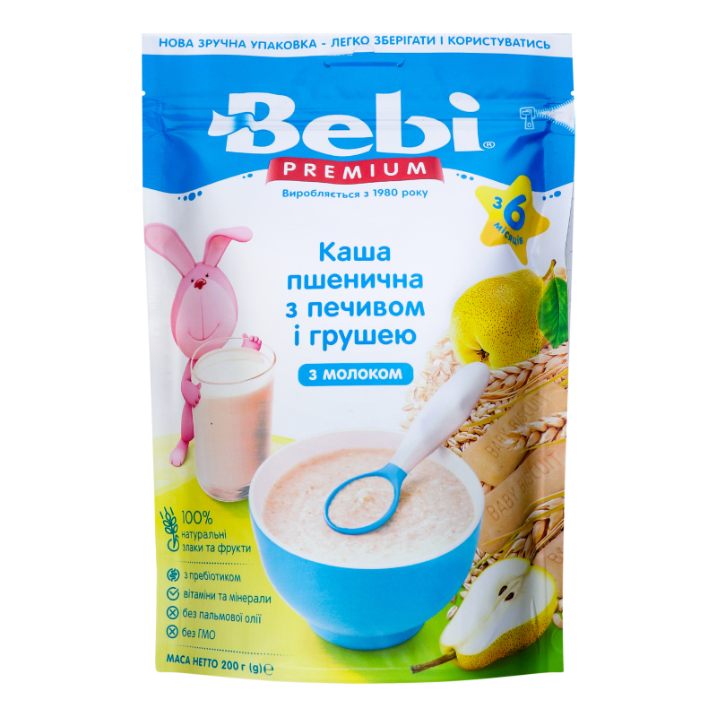 Молочна пшенична каша Bebi Premium з печивом та грушею, 200 г (8606019654283)