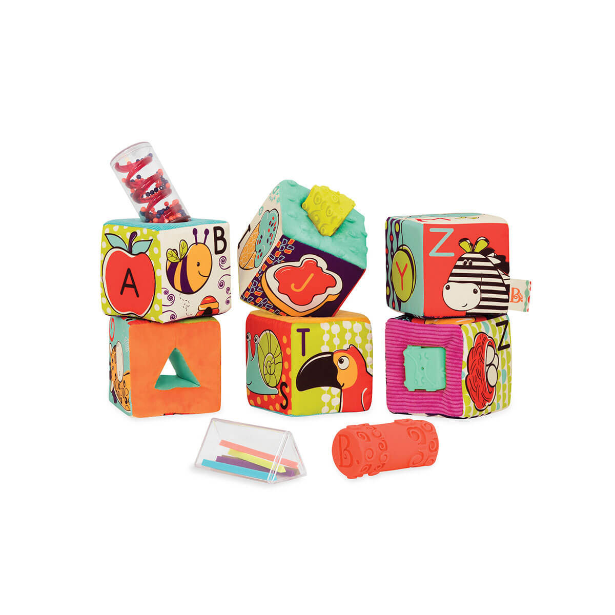 М'які кубики. Шиються з бавовняних тканин. В якості наповнювача використовують поролон і синтепон. У якісних виробів фарба не змивається, тому не страшно, якщо малюк потягне іграшку до рота. Текстильні кубики можна часто прати. При натисканні вони деформуються, але тут же повертаються в первинну форму. Якщо малюк ненавмисно впаде на таку іграшку, вона не тільки не заподіє йому шкоди, але немов подушка, пом'якшить удар. Текстильні кубики бувають будівельними, музичними, у вигляді брязкалець. Іграшки з водонепроникним покриттям підходять для купання.