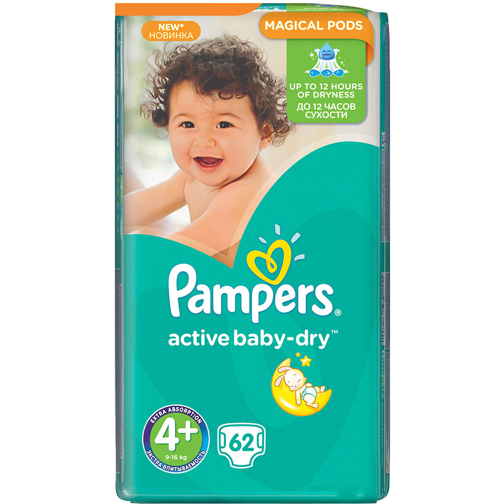 Підгузки Pampers Active Baby Maxi Plus Джамбо, 9-16 кг, 62 шт. (4015400264774)
