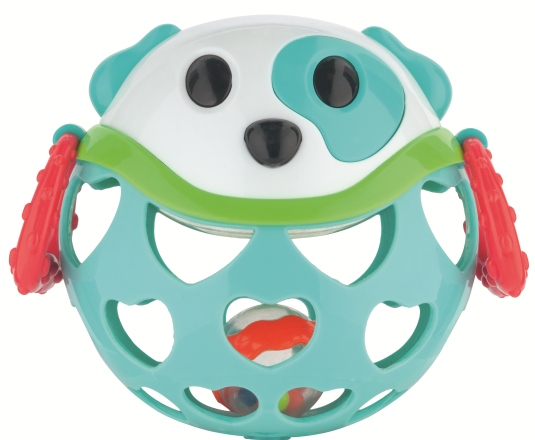 Характеристики: різноманітні текстури та контрастні кольори, еластичні елементи, брязкальце з кольоровими кульками, еластичні рельєфні ручки.