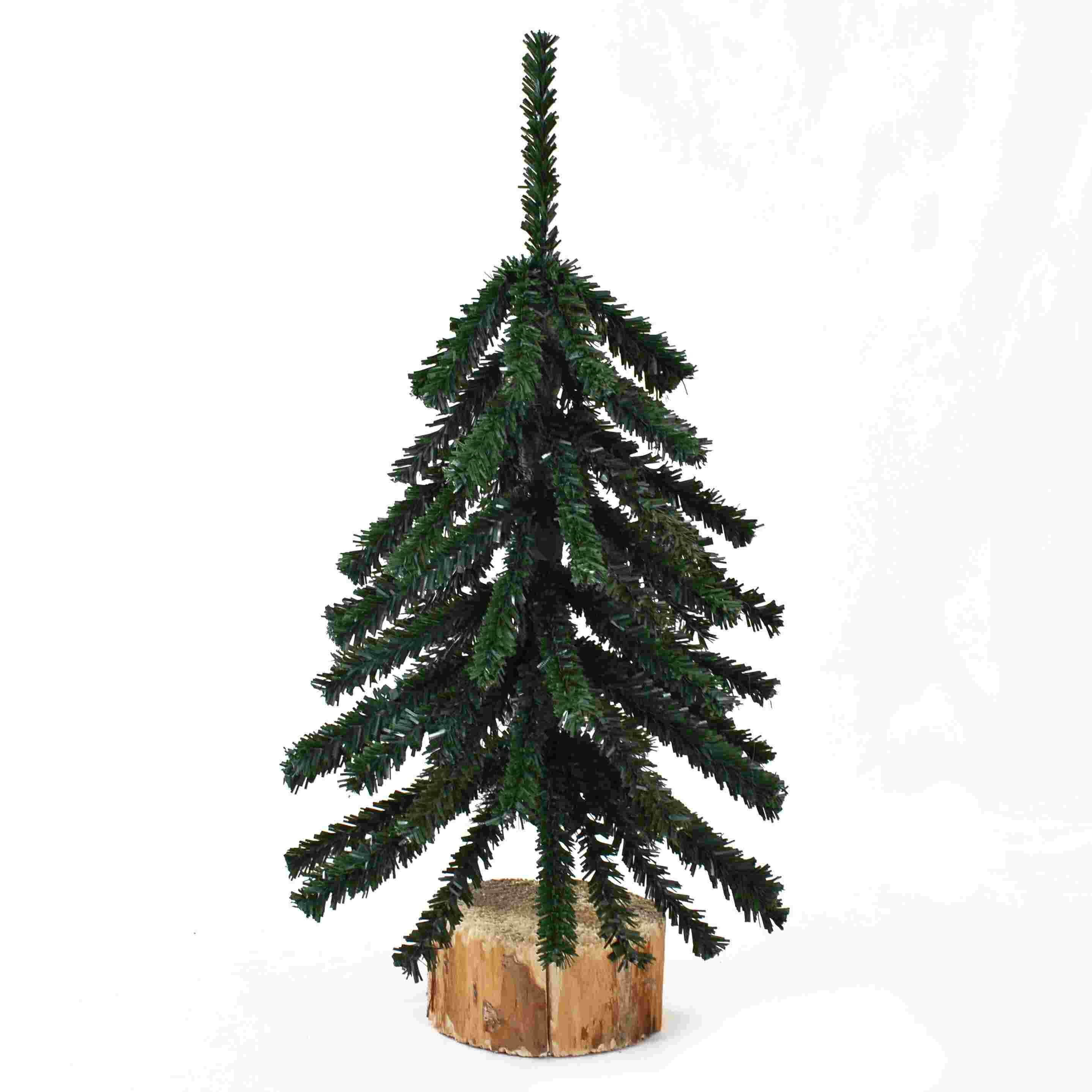 Штучна маленька ялина — відмінний декор для приміщення у період новорічних свят, який можна використовувати прикрашаючи безліч поверхонь у будинку, офісі, в торгових центрах. Поставте таку ялину на столі, полиці, тумбочці, на прилавку магазина, в прикасовій зоні – і святковий настрій оточуючим буде гарантовано. Компактність і якісне виконання даної прикраси — це і є її головні переваги. Матеріал: ПВХ плівка шириною 2 см; дріт; дерев'яний пеньок. Висота: 30 см. Діаметр нижнього ряду: 24 см. Габарити: 0,30 м.