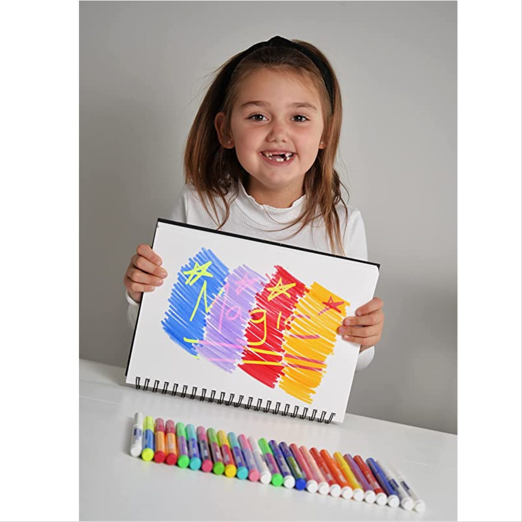 В колекції 25 унікальних фломастерів для створення яскравих 3-D написів, візерунків, які змінюють колір, написів, які з’являються незрозуміло звідки, малюнків, які зникають або мають інші вражаючі особливості. Завантаж безкоштовний додаток Marvin’s Magic, щоб відкрити ексклюзивні фокуси і 3D-ілюзії у Доповненій реальності, а також відео інструкції до фокусів із цього набору. Щасти тобі на магічному шляху! Від 3-х років.