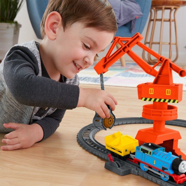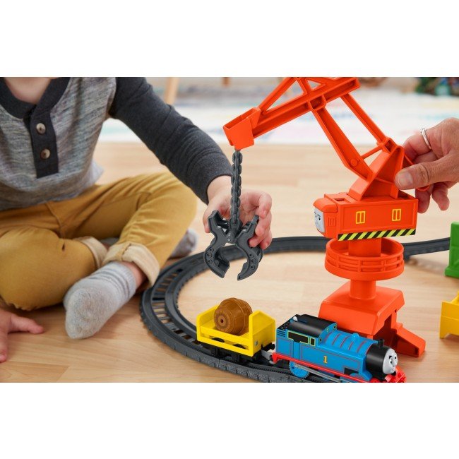 З моторизованим ігровим набором "В порту" юні фанати мультсеріалу "Томас і Друзі" зможуть перенестись у світ улюблених героїв. Допоможи Томасу доставити вантаж у доки, але для цього тобі знадобиться допомога його вірної подруги Касії. Використовуй іграшковий підйомний кран, щоб підняти і відвантажити товар у вантажний вагон паровозика, а потім натисни на перемикач, щоб Томас помчав по залізничних коліях. До набору входить моторизований паровозик Томас.