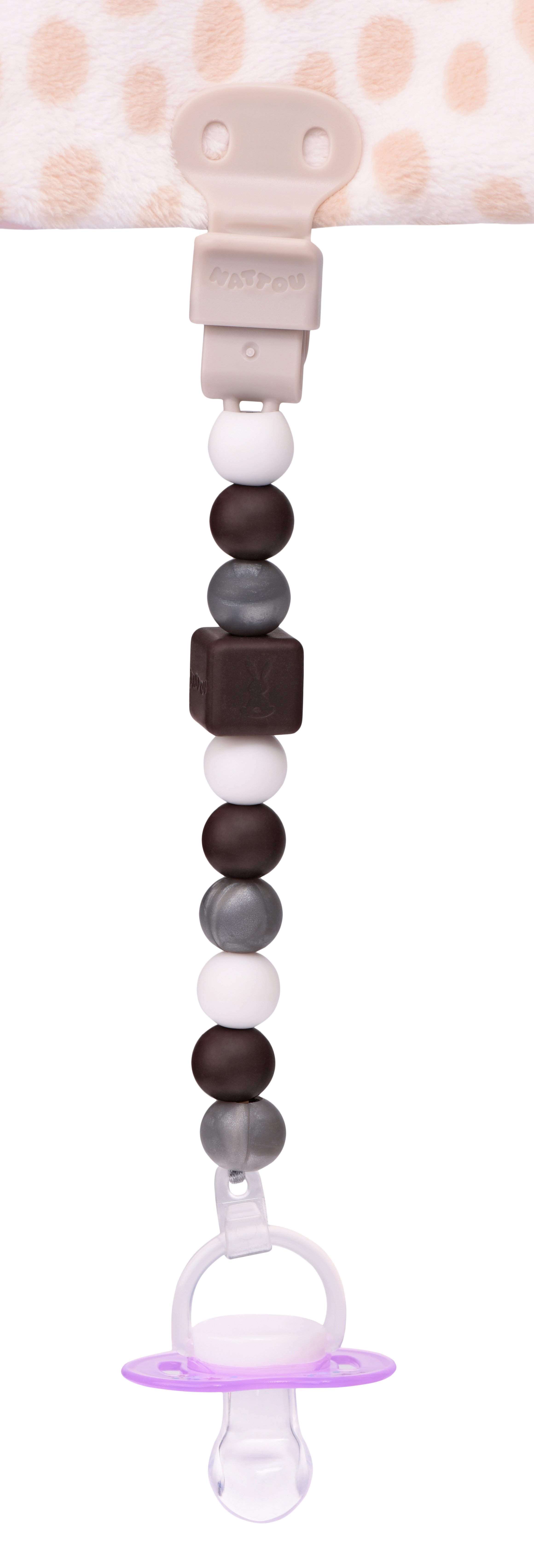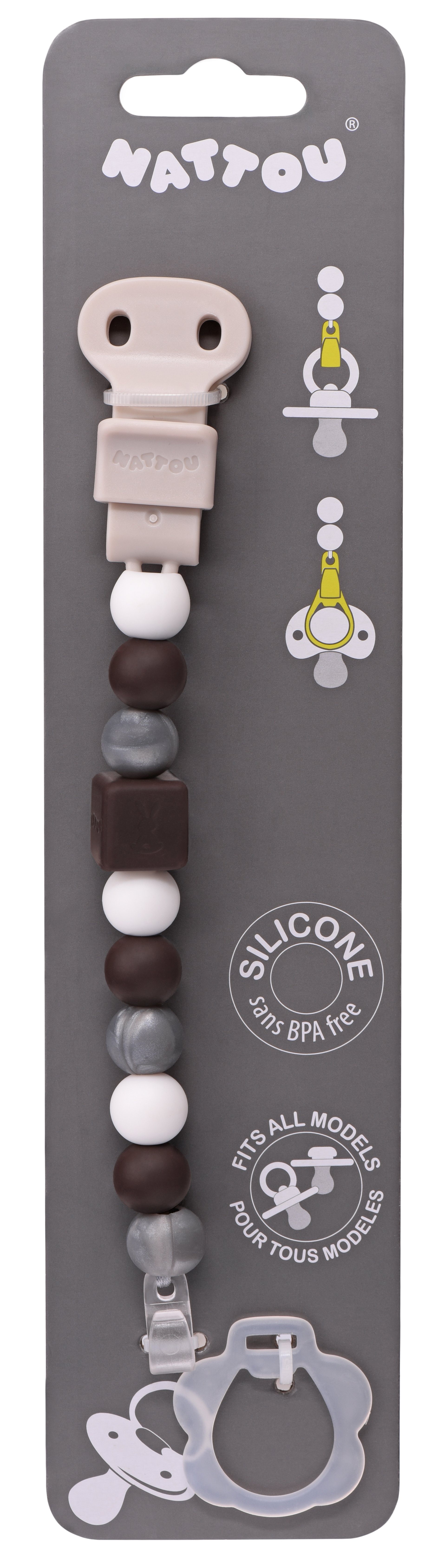 Силіконовий тримач для пустушки Nattou корисний не тільки для збереження пустушки, а й добре розвивати Мутріку, яка корисна для розвитку мови. Також він допоможе при прорізуванні зубчиків у дітей.