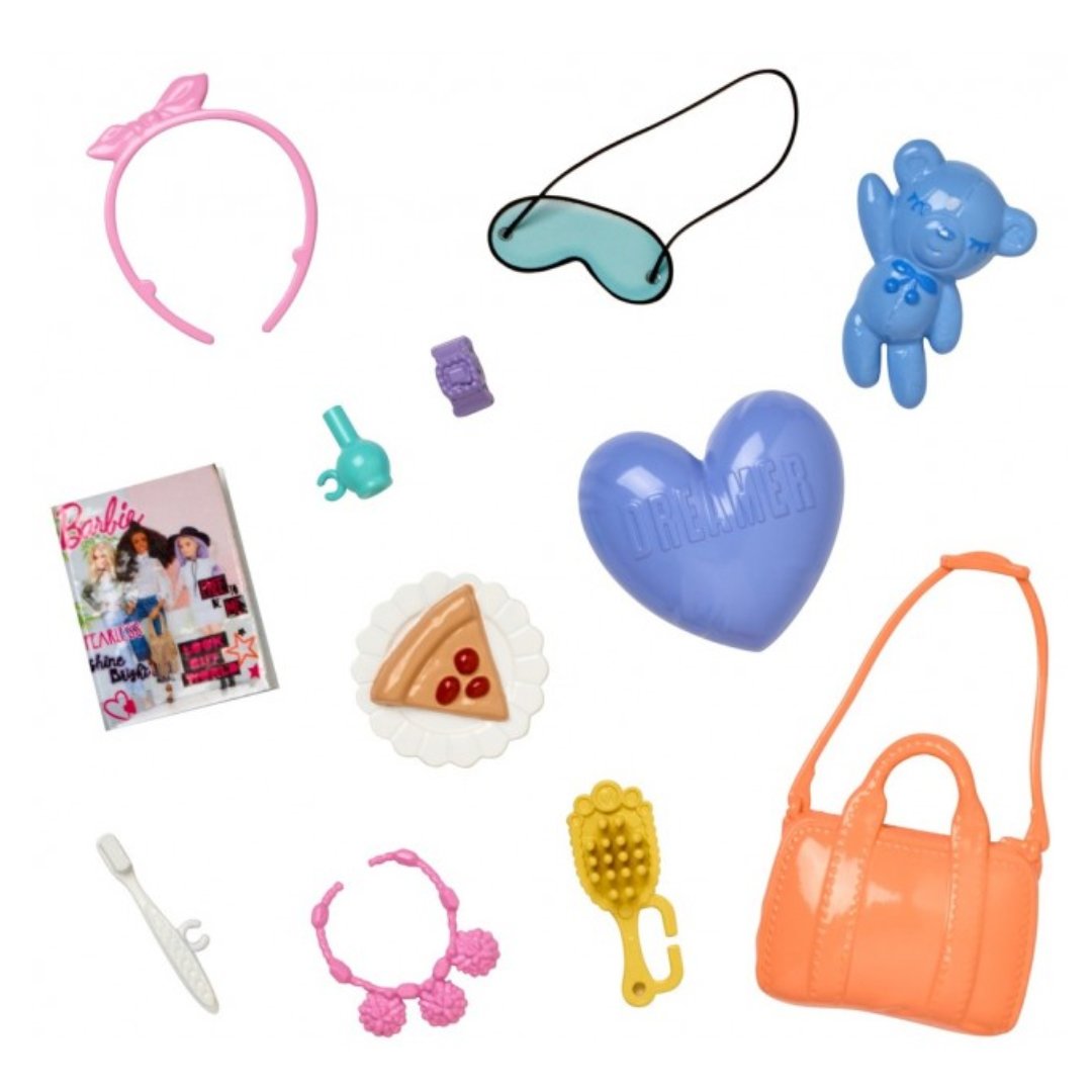 Ну як стильній дівчині обійтися без аксесуарів? Допоможіть ляльці Барбі зібратися у подорож. Серія “Все для мандрівки” представлена чотирма наборами з 12 тематичних аксесуарів. Кожен комплект йде окремо. Але при бажанні ви можете зібрати всю колекцію, щоб урізноманітнити образи своєї Барбі. Лялька до набору не входить. Серед тематичних аксесуарів ви знайдете прикраси, техніку, окуляри, косметику, сумочки та головні убори. Що сьогодні обере ваша краля - капелюх з широкими полями чи спортивну кепку? Маленьку рожеву сумку-листоношу чи вмістку червону валізу? У мандрівці знадобиться смартфон і камера, крем для засмаги, люстерко. За переглядом глянцевого журналу час у дорозі сплине непомітно. Не забудьте і про їжу з напоями. Швидко втамувати голод можна шматочком піци чи морозивом. Іграшка рекомендована дітям від 3-х років. Розвиває уяву, дрібну моторику, естетичний смак, кольорове сприйняття. Артикул 794248.