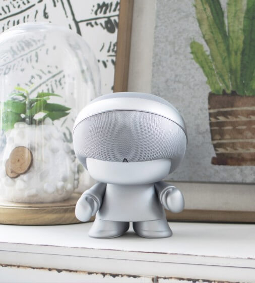 Насолоджуйтесь яскравою і музичною атмосферою до 8 годин разом з портативними колонками Xoopar. Стереозвук на 360 градусів! Grand Xboy Срібло був розроблений спеціально для будинку: він підійде для будь-якої вітальні і стане стильним елементом декору. Чудовий стереозвук з насиченими басами потужністю 23 Ватт: 2x10 Вт + 1 х 3 Вт для супер басів. Підійде для відтворення музики і кіно. Є мікрофон для hands-free дзвінків. В комплект входить: акустика, аудіо кабель, кабель для зарядки. Висота - 20 см. Відстань передачі - до 10 м.