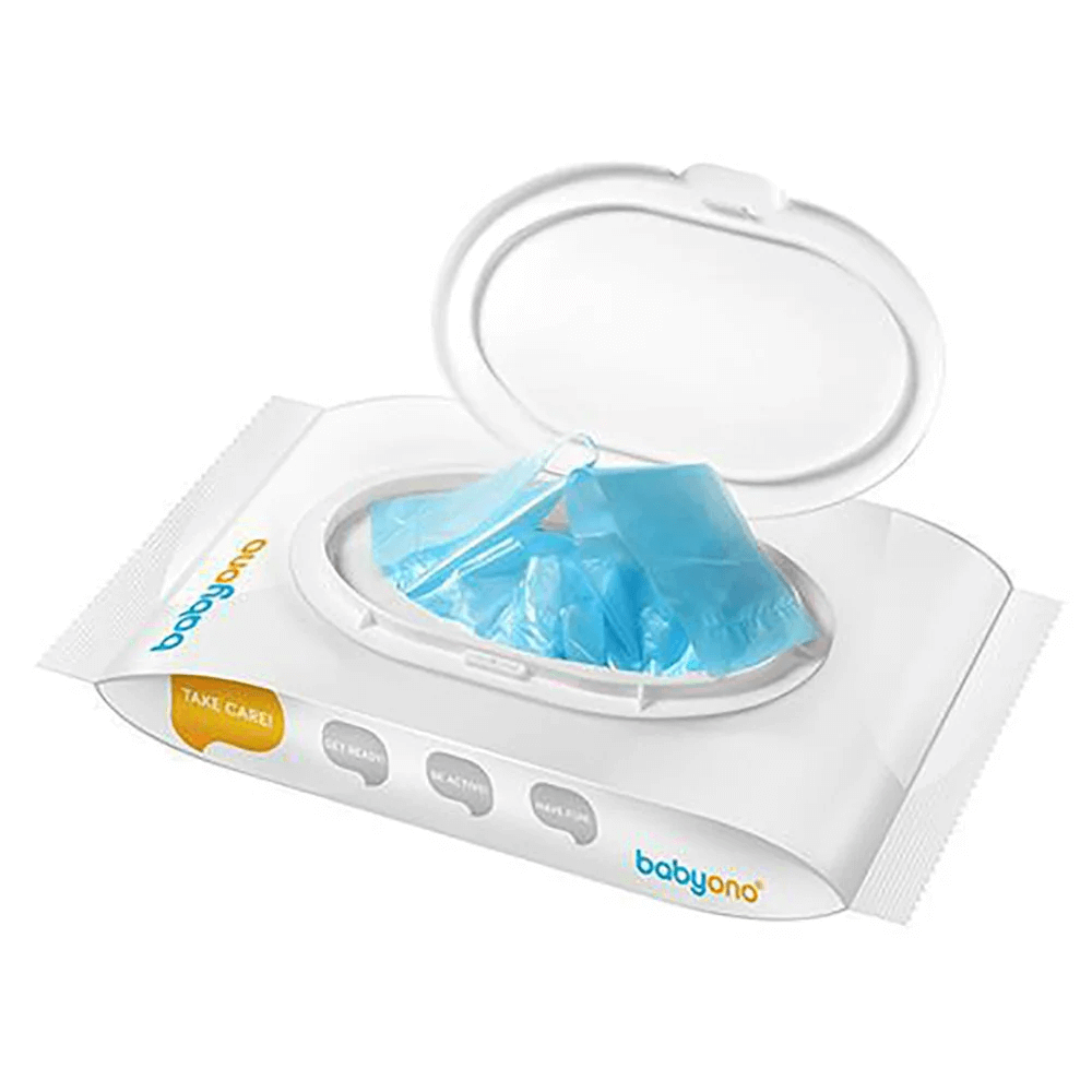 Складайте використані серветки та пелюшки у спеціальні пакети BabyOno! Це зручний і гігієнічний спосіб утилізації.