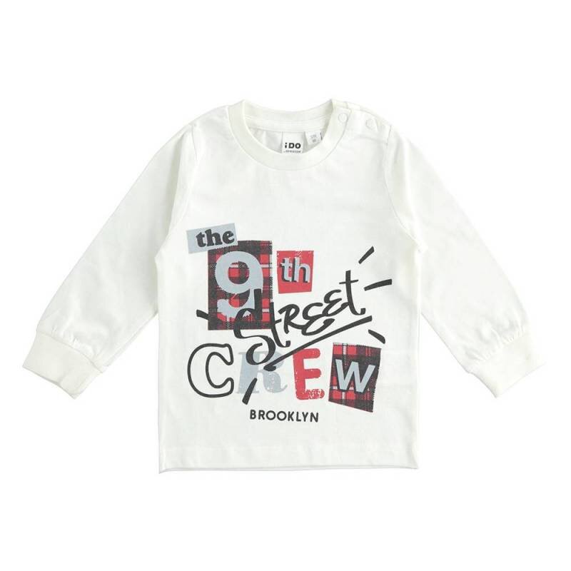 Трикотажний реглан iDO для хлопчика виготовлений з 100% бавовни. Кругла горловина і манжети на рукавах з еластичної трикотажної гумки. Кофта застібається на 2 кнопки збоку на плечі. Перед реглана прикрашає малюнок. Колір - білий. Дитячий одяг бренду iDO - це висока європейська якість і кращі модні тренди.