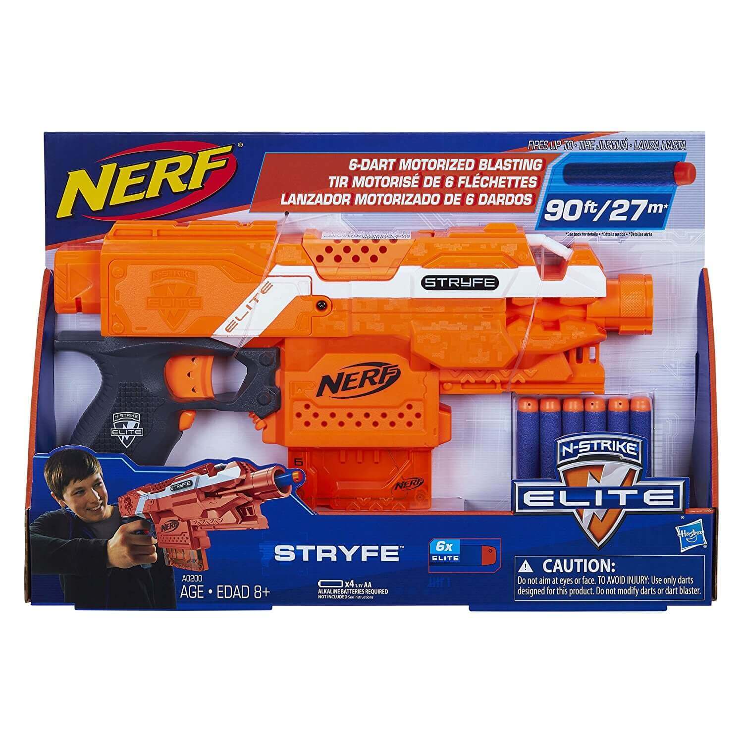 Бластер Nerf Elite Stryfe (A0200) - напівавтомат з магазином на 6 стріл для шанувальників автоматичних бластерів. Легкий, точний та простий у користанні бластер. Ефективний в ближньому бою і на середніх дистанціях. Дитина швидко його освоїть і зможе легко утримувати зброю однією рукою.