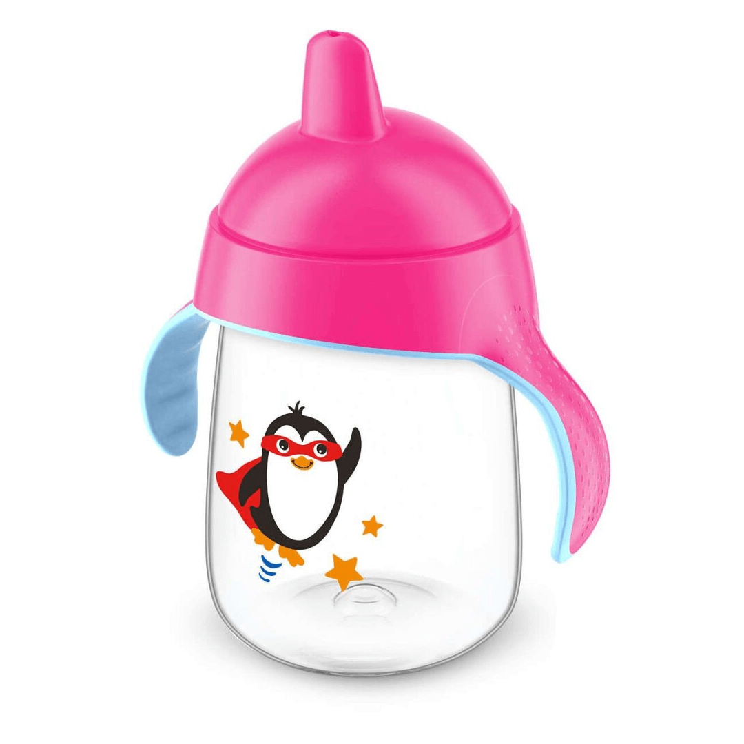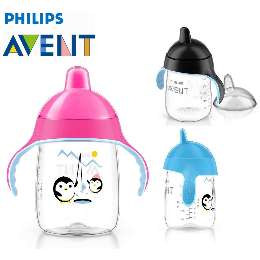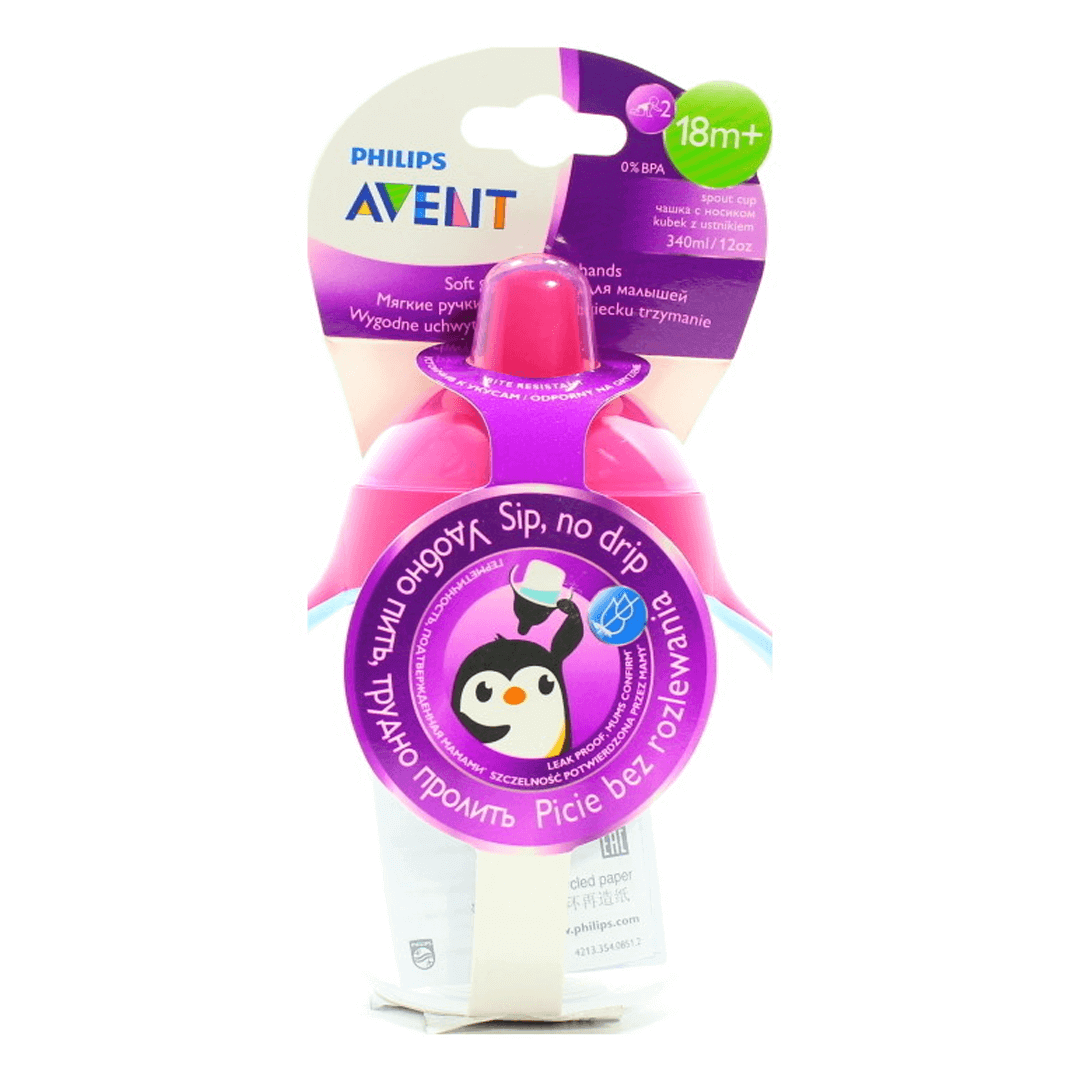 Чашка-непроливайка з носиком, м'якими ручками та клапаном від протікання створена Avent Philips для малюків старше 18 місяців. Не містить бісфенол-А. М'які навчальні ручки привчають малюка тримати чашку та пити без сторонньої допомоги. Вони не тільки підходять малюкові за формою, а й перешкоджають вислизанню. Розташований під кутом носик допомагає малюкові під час пиття тримати шию в природному положенні. Поїльник легко розбирається та чиститься. Всі деталі можна мити в посудомийній машині. Чашка сумісна з усіма пляшечками Авент серії Natural і Classic, крім скляних.