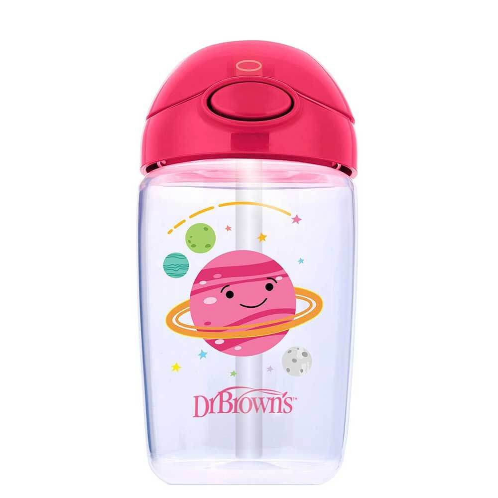 Комплект складається з чашки-поїльника об'ємом 350 мл, м'якою трубочки і кришки рожевого кольору з малюнком планет на стінці. Після кожного використання чашку слід розібрати, очистити і ретельно промити, приділяючи увагу силіконовим деталей. Контролюйте температуру рідини в поїльник, не залишайте малюка з чашкою без нагляду.
