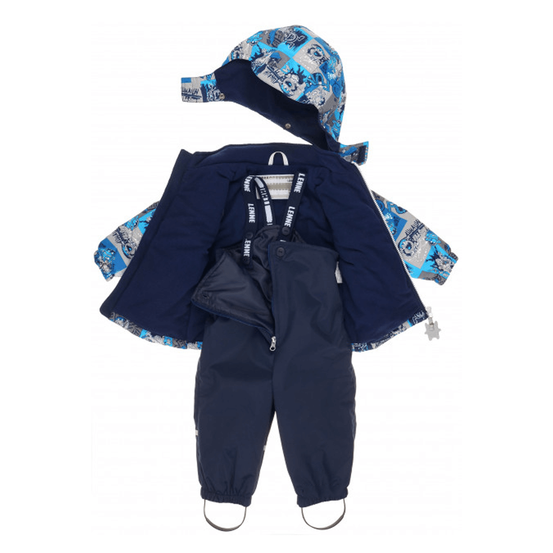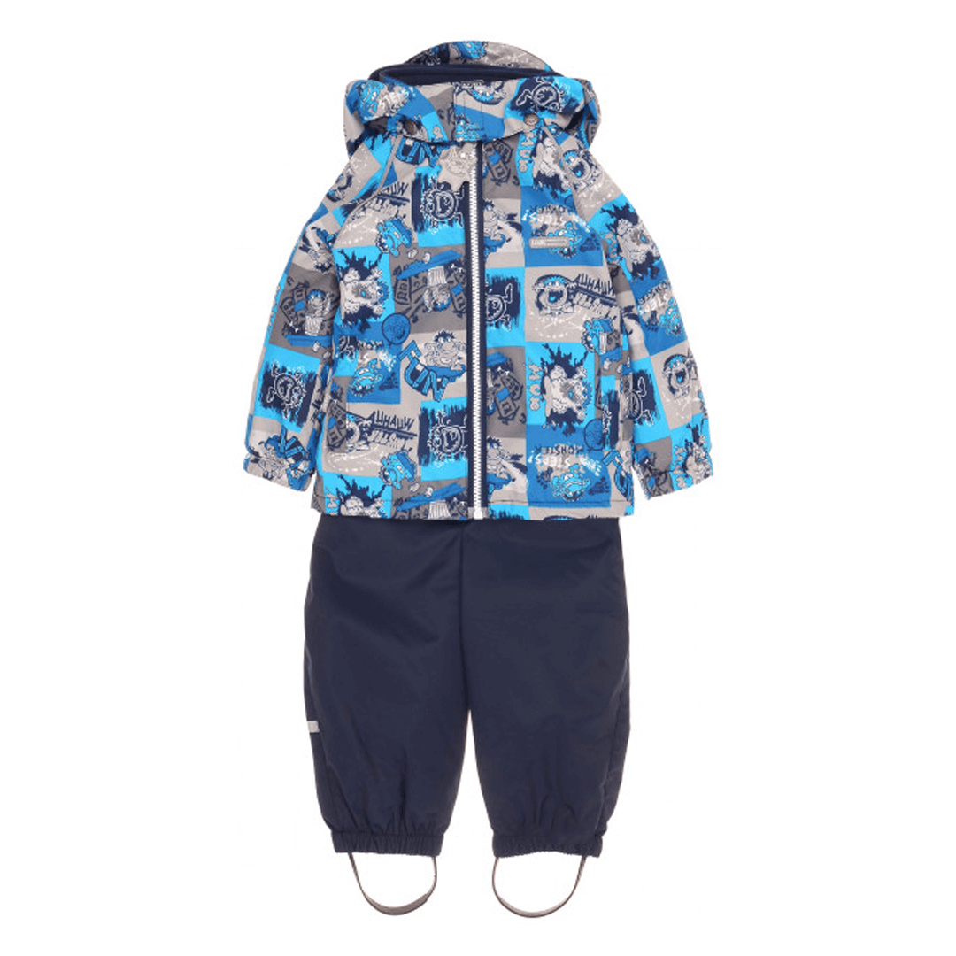 Яскравий і практичний демісезонний комплект для спритних непосид 2 років. Розрахований на температурний режим від +15 до 0 градусів. Утеплювач - IsoSoft 45 г / м². Є світловідбивачі. Складається з сіро-блакитної куртки і однотонного темного напівкомбінезона на регульованих лямках. Комір верху - стійка, внутрішня частина - велюр. Капюшон відстібається, оброблений внутрішньої гумкою, утеплений одним шаром, підкладка - велюр. Зверху є невеликий козирок, який захищає обличчя дитини від прямих попадань сонячних променів. Застібка-блискавка прикрита планкою. Манжети рукавів і низ куртки стягнуті гумкою. У куртки 2 накладних кишені. Низ напівкомбінезона стягнутий гумкою, регулюється штрипками. Є застібка-блискавка.