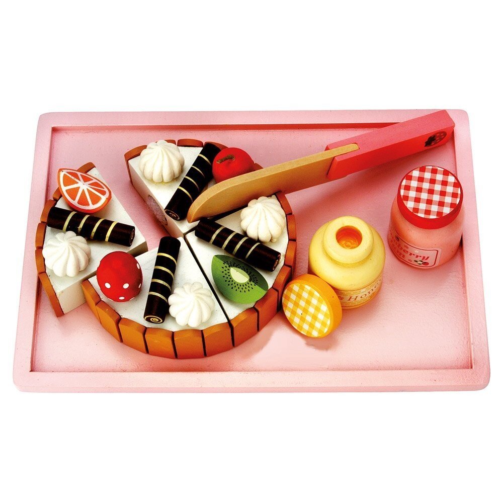 “Торт на День народження” - цікавий барвистий набір для рольових ігор від ТМ Bino (Біно). Ваша дитина може відчути себе справжнім пекарем. Іграшка виготовлена з натурального дерева, її краї акуратно оброблені і тому вона безпечна в грі. Комплектація: торт, ніж, піднос, 2 баночки з "джемом". Матеріал: дерево.