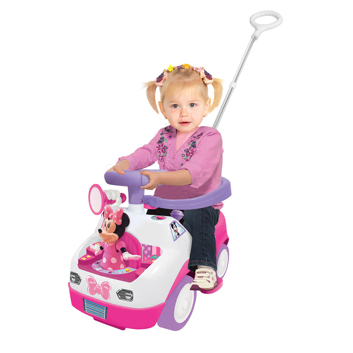 Рожевий дивомобіль зі світлом і звуком створений для справжніх маленьких мрійників! Елегантний толокар, створений за принципом 3-в-1, в стилі популярного мультфільму студії DISNEY Міккі-Маус. Він розважить дитину миготливими вогниками, приємними мелодіями і забавними звуками, а також реалістичними звуками двигуна і сигналу. На панелі управління є піаніно з різнокольоровими клавішами, а також кнопки і важелі. На капоті встановлена фігурка Мінні-Маус, що рухається під звуки приємної музики. Машина оснащена захисним огородженням для максимальної безпеки і комфорту малятка.