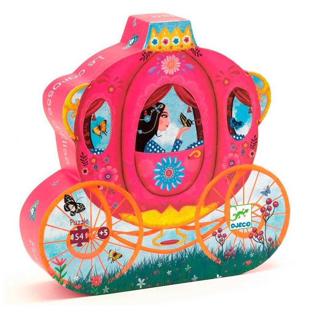 Пазл Карета Елізи - це захоплюючий набір для малюків. Мозаїки від DJECO відрізняються особливим підходом до оформлення. Перше, що бачить кожна дитина і батько, - це яскрава коробка у формі карети. Упаковка виконана в яскравих рожевих тонах і привертає увагу. Її приємно тримати в руках і розглядати.