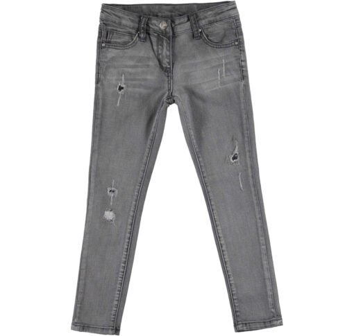 Сірі джинси "сліми" з модними потертостями та невеликими декоративними дірочками спереду. Модель призначена дівчатам 7 років, розрахована на зріст 122 см. Склад тканини: 97% бавовни, 3% еластана. Колір - NERO. Дитячий одяг бренду iDO - це висока європейська якість і кращі модні тренди!