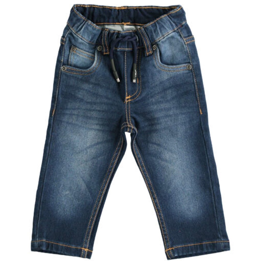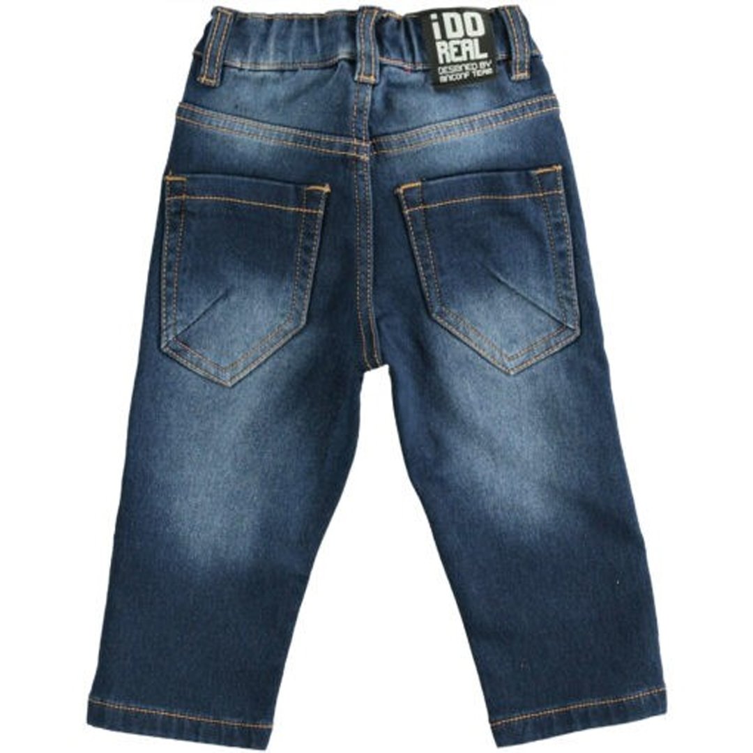 Сині джинси прямого крою для хлопчиків 1-2 років зростом 81-86 см. Мають високу посадку, кишені спереду та ззаду, втягнуту у пояс шнурівку. Молодіжний вигляд штаням надають легкі потертості та імітація жатки. Склад тканини: 75% бавовна, 24% поліестер, 1% еластан, трикотаж. Дитячий одяг бренду iDO - це висока європейська якість і кращі модні тренди!