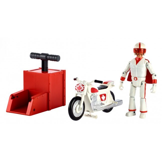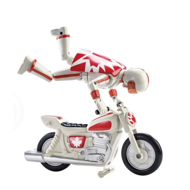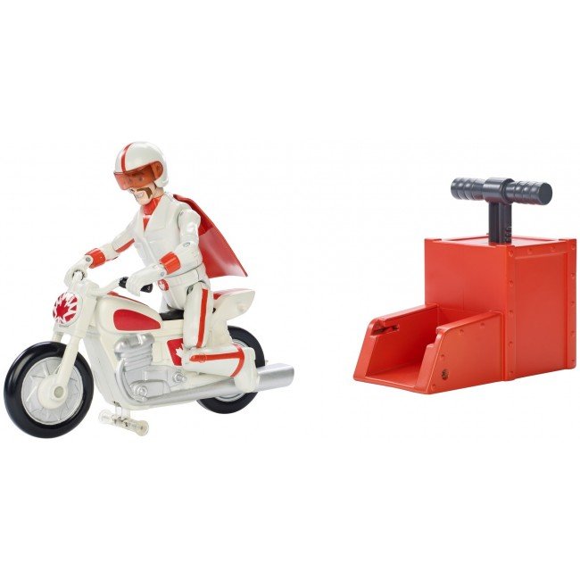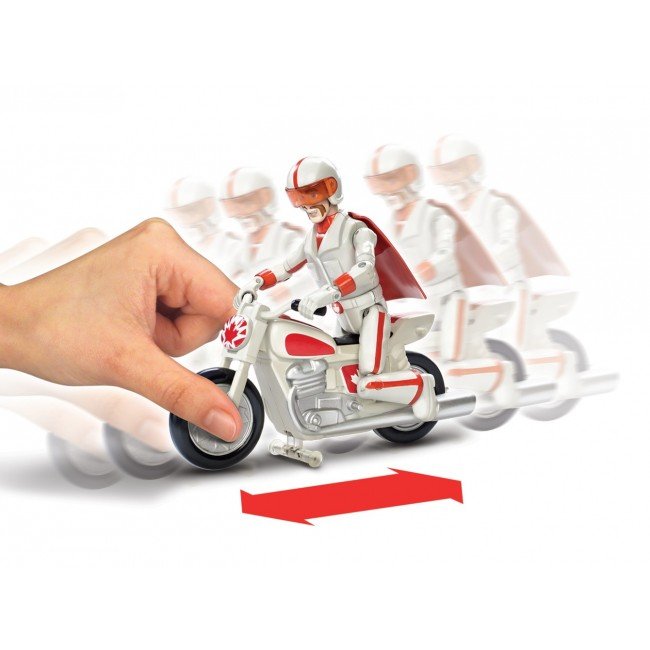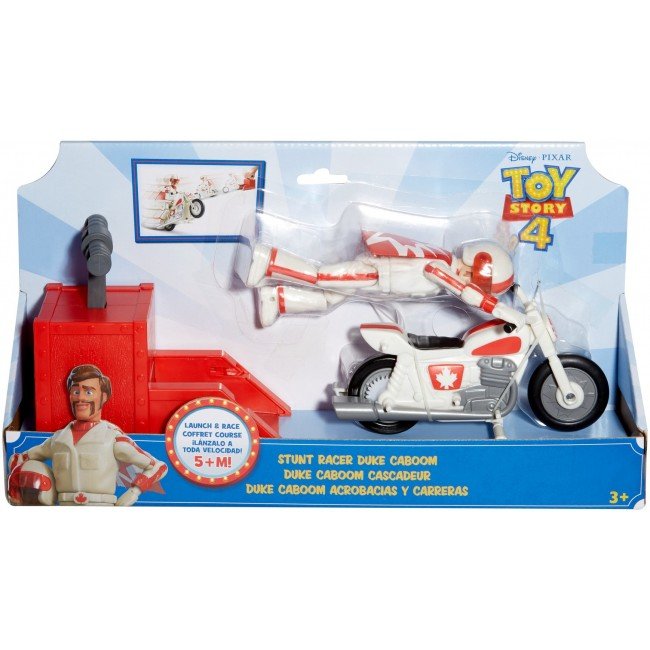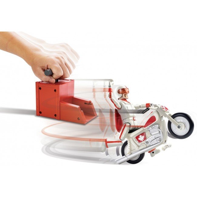 Зустрічай нового персонажа з мультфільму "Історія іграшок-4" Disney-Pixar. Дюк Бубух примчав на своєму крутому мотоциклі! Встанови Дюка Бубуха з мотоциклом в пускову установку, натисни на важіль та запускай. Вони зможуть промчатись понад 5 метрів. Також Дюк Бубух може виконувати різноманітні трюки, наприклад проїхати на задньому колесі. Канадський гонщик одягнений у свій каскадерський костюм, в якому з’являється в мультфільмі. Діти від 3-х років будуть в захваті від нового персонажа каскадера.