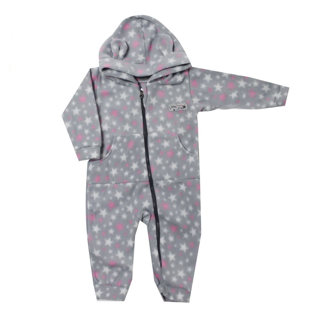 Теплий сірий комбінезон для новонароджених від українського виробника “Няня”. Створений для першого півріччя життя немовляти. Підходить для прогулянок прохолодними літніми вечорами. Пошитий з флісу - теплої, “дихаючої”, зносостійкої, гіпоалергенної тканини. Комбінезон має капюшон з вушками. По всій довжині моделі є застібка для зручного вдягання. На рукавах - манжети, що м’яко огортають дитячий зап’ясток. Штанці закриті, щоб ніжки не мерзли. Тканина - 100% бавовна. Комбінезон розрахований на малят зростом 62-74 см. Принт - білі та рожеві зірочки. Артикул 374081.