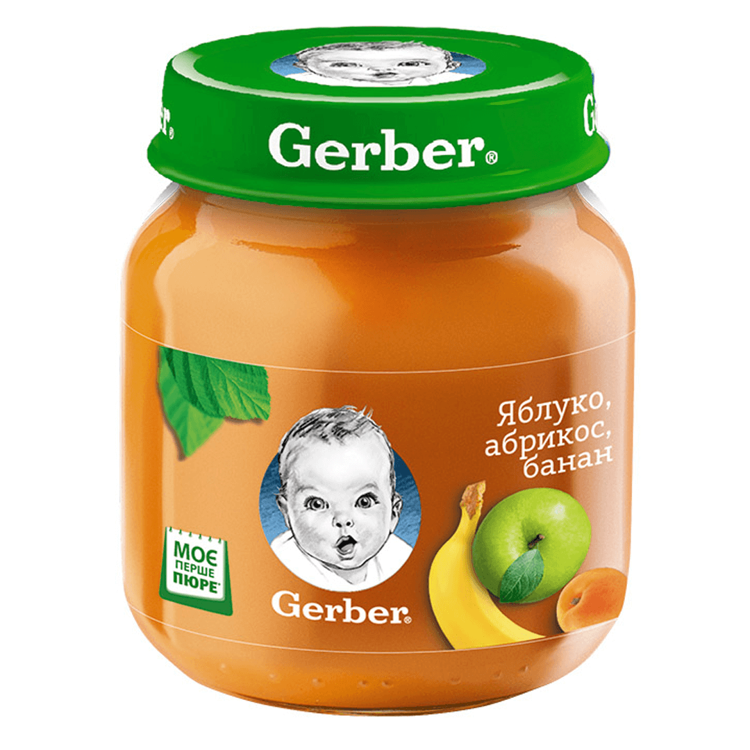 Пюре Gerber® "Яблуко, абрикос і банан" урізноманітнить раціон малюка, а також підійде для плавного розширення раціону. Спеціальний спосіб приготування дозволяє зберегти смак, запах і колір натуральних овочів та фруктів. Пюре виготовлено з низькоалергенних інгредієнтів. Без додавання крохмалю та цукру. Без ГМО. Для дітей з 6 місяців. Спеціальна технологія пакування.