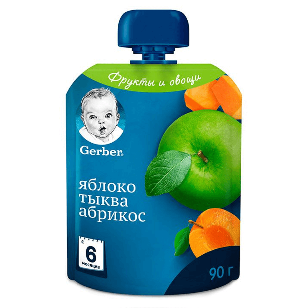 Фруктове пюре Gerber Яблуко, гарбуз і абрикос, 90г