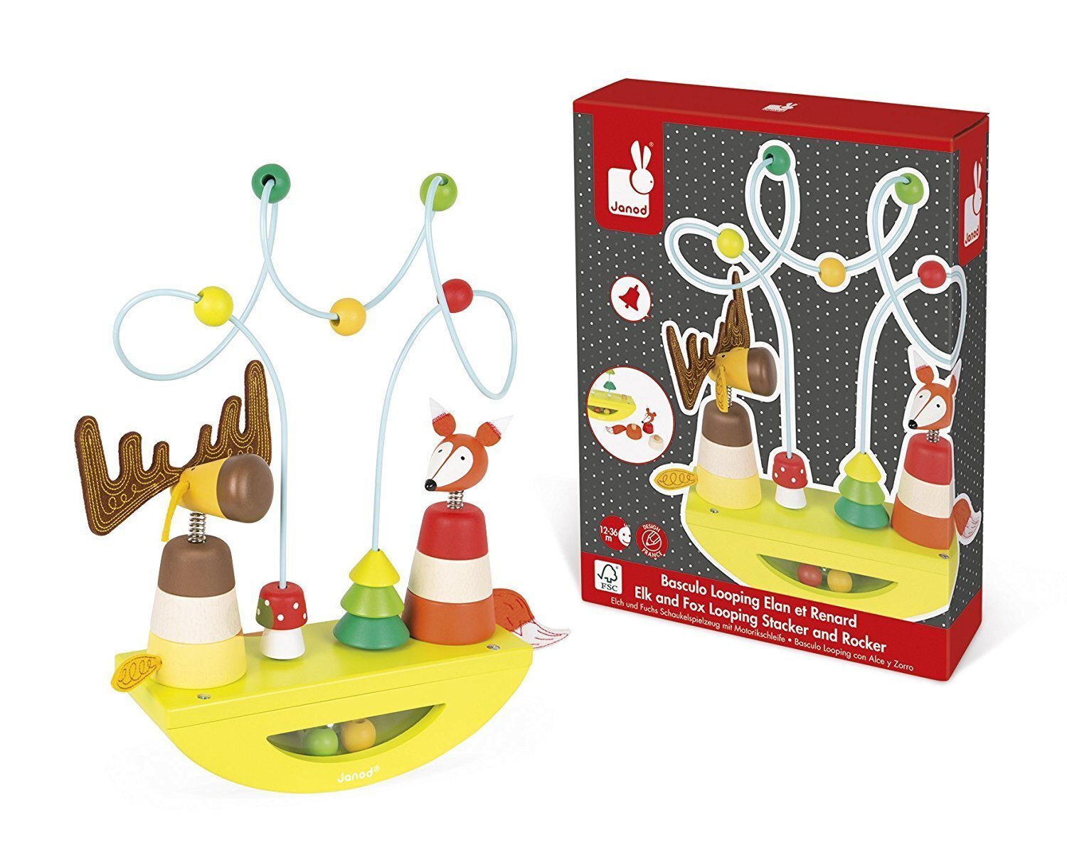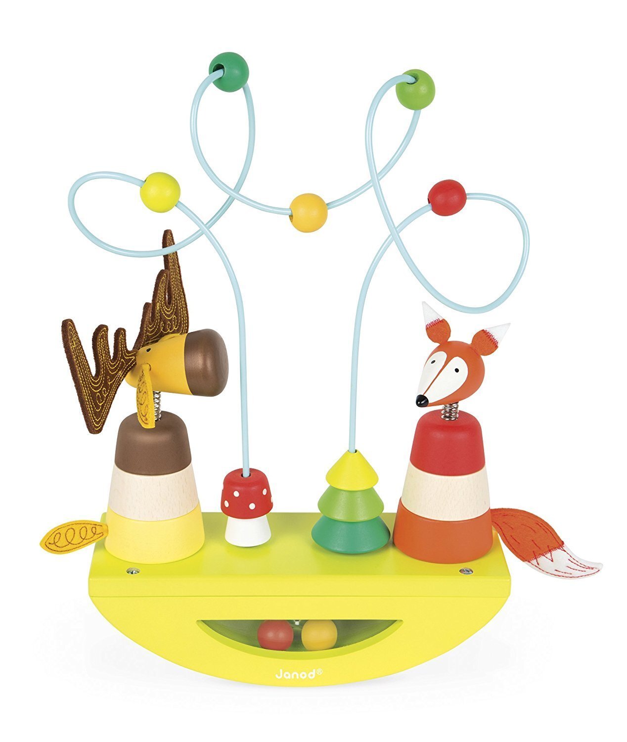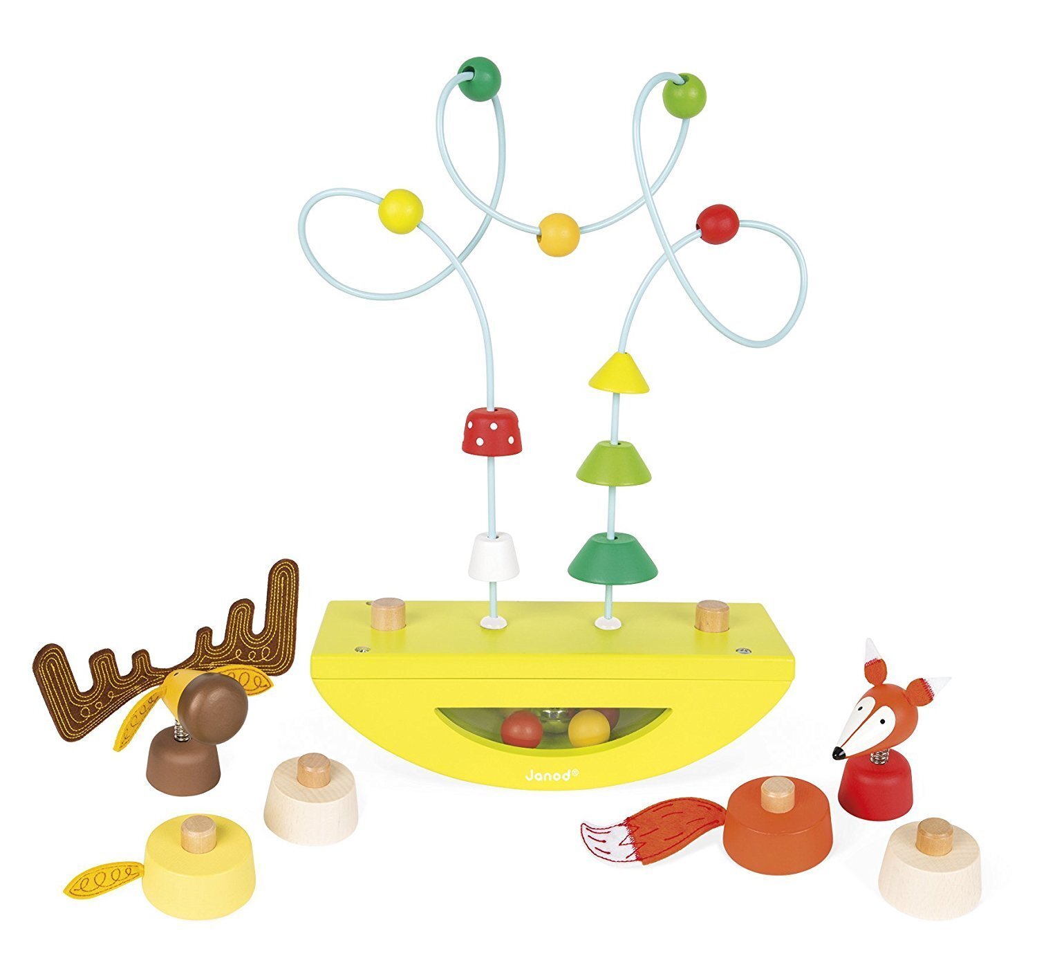 3 гри в 1: лабиринт з кульками для розвитку концентрації і рухових навичок; дві тварини-пірамідки, які можна безліч разів збирати і розбирати, що допомагає дитині розвинути уяву; балансир, за допомогою якого малюк вчиться координації руху.