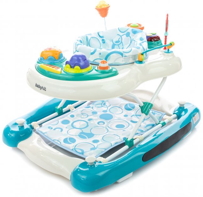 BabyHit Active — це 2 в 1, дитячі ходунки та розвивальний центр. Яскраві розвивальні іграшки допоможуть малюкові поліпшити дрібну моторику, а батут, який розташований в дитячих ходунках, дасть змогу безпечно стрибати й активно розвивати свою координацію.