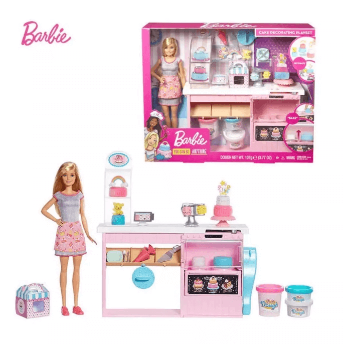 Комплектація: лялька Барбі з комплектом одягу, меблі для пекарні, продукти, пластилін та посуд. Рекомендовано для дітей від 4-х років.