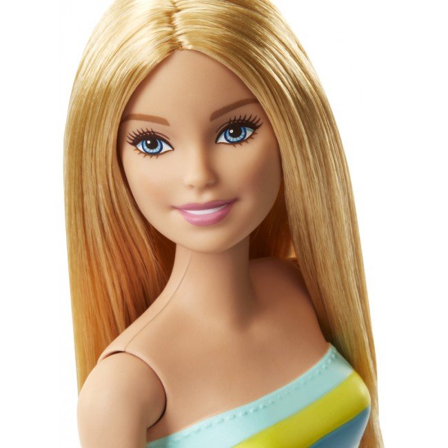Barbie одягнена в купальник і обгорнута рушником. У ляльки гнуться коліна і під час гри вона може приймати реалістичні пози.