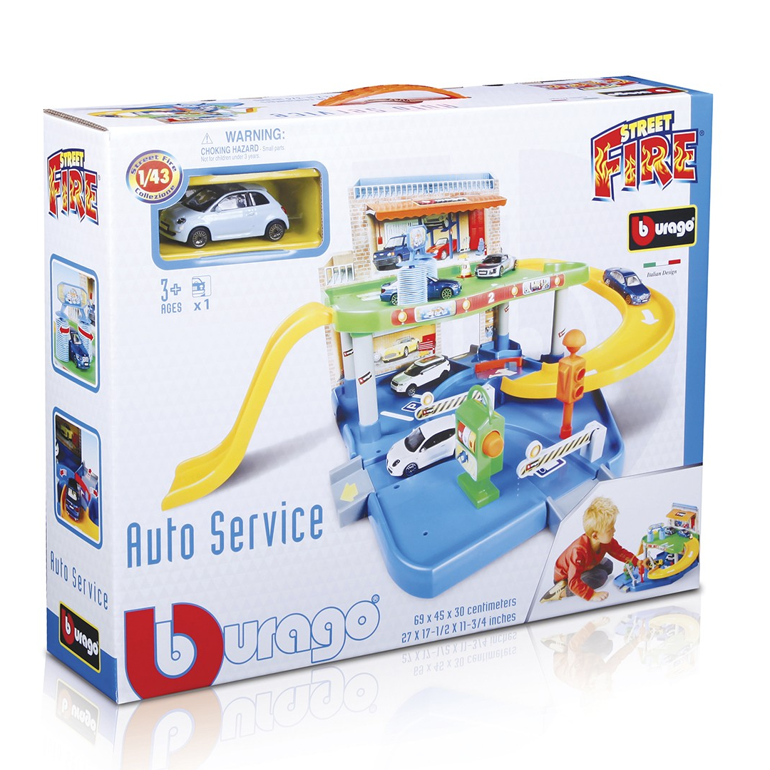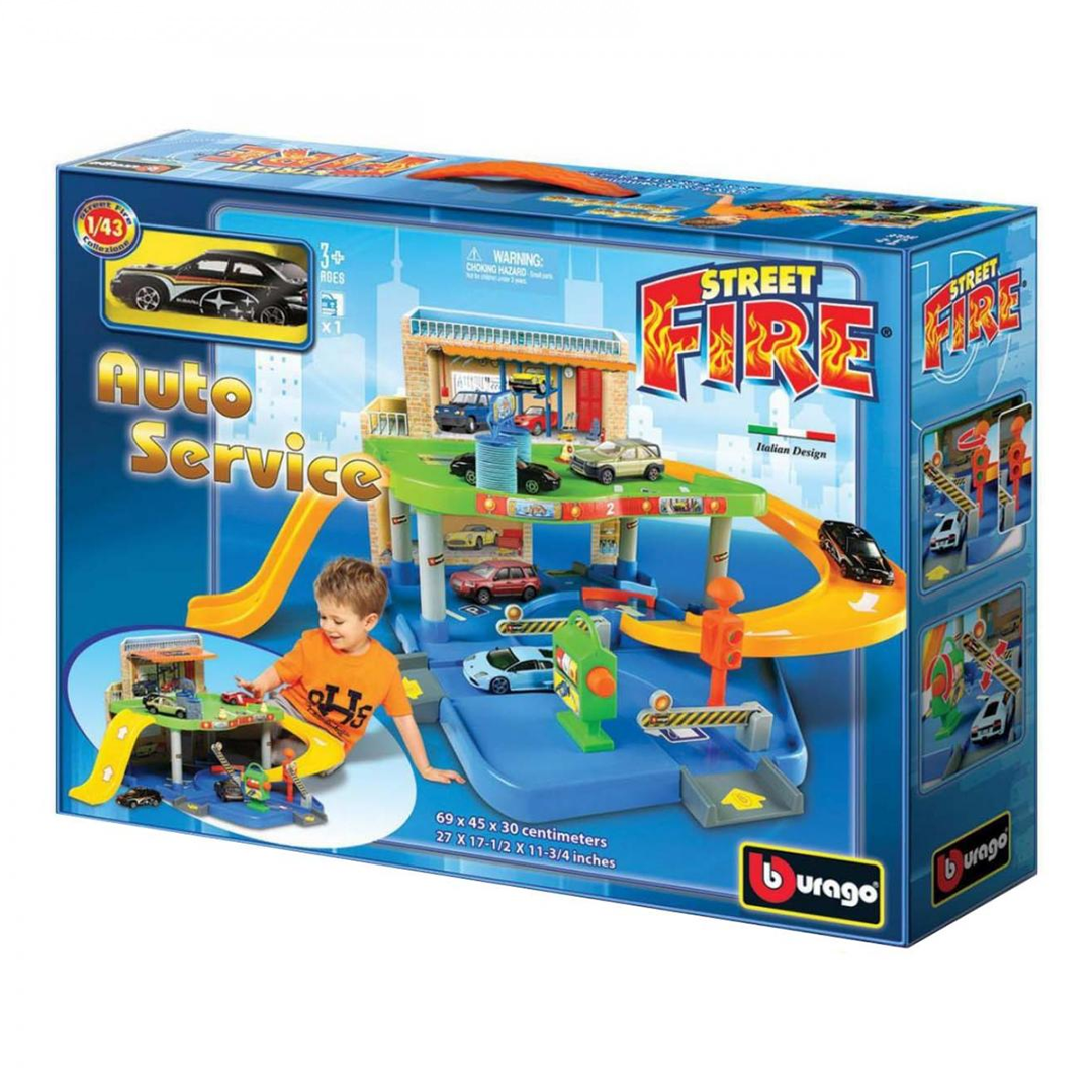Великий двоповерховий гараж відомого бренду Bburago захопить увагу вашого маляти надовго. Грати дитина може як наодинці, так і з друзями. А це ще цікавіше! Ігровий набір Гараж з серії Street Fire має два рівні. В наборі є автозаправка, автомийка, ремонтна естакада, майстерня, два треки для спуску, елементи регулювання руху. Реалістична розмітка додає цікавості грі. Окрім елементів гаражу, до комплекту входить одна металева машинка Bburago у масштабі 1:43. Розміри зібраного паркінгу - 69х45х30 см. Всі деталі іграшки зроблено з високоякісного міцного та безпечного пластику. Ігровий розрахований на дітей від 3 років. Розвиває дрібну моторику, фантазію, логічне мислення, спритність, акуратність. Артикул 11664.