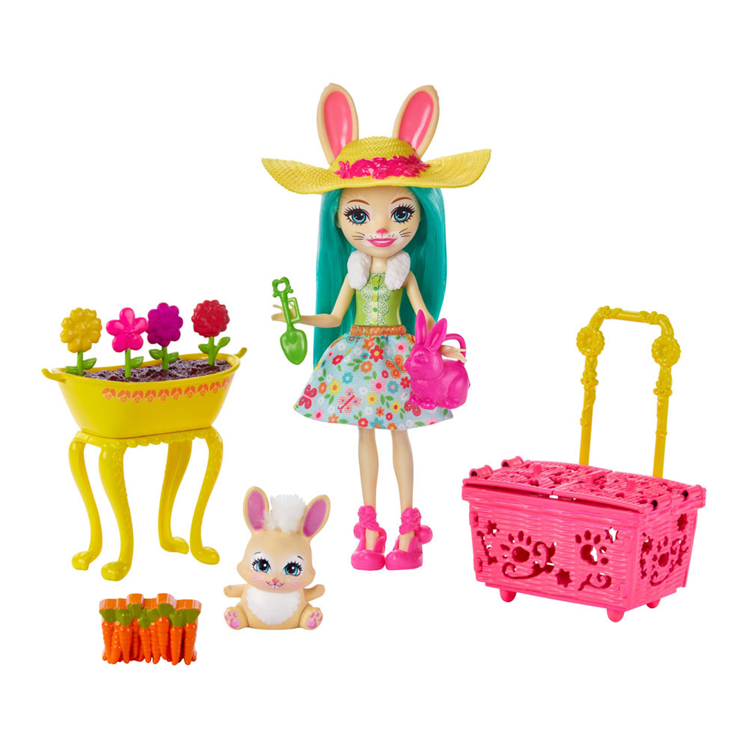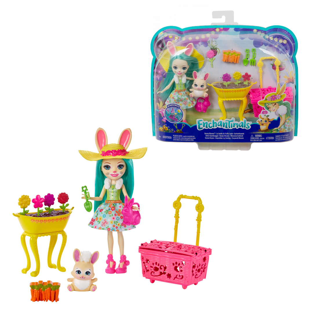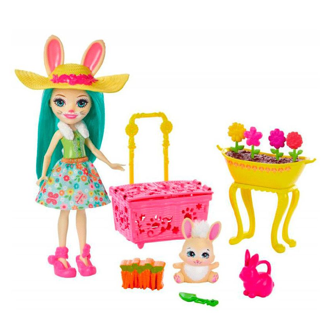 Чудовий подарунок дитині, що захоплюється мультиком “Енчантімалс”. Іграшку створено для дітей 4-8 років. До комплекту входить лялька-чарівниця Флаффі, кролик Моп, садові інструменти, кошик на коліщатках, ящик на високій підставці для квітів. Лялька заввишки 15 см виготовлена з якісного міцного пластику. Має довге волосся та детально промальоване обличчя. У дівчинки-перевертня рожевий ніс та кролячі вушка, яскраві знімні туфлі та плаття. Серед аксесуарів є морквина, квіточки, лійка. Час порпатися у садочку! Гра з ляльками Enchantimals вчить дитину піклуватися, розвиває фантазію та дрібну моторику.