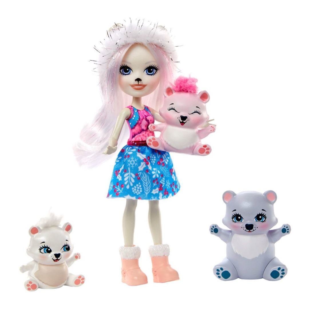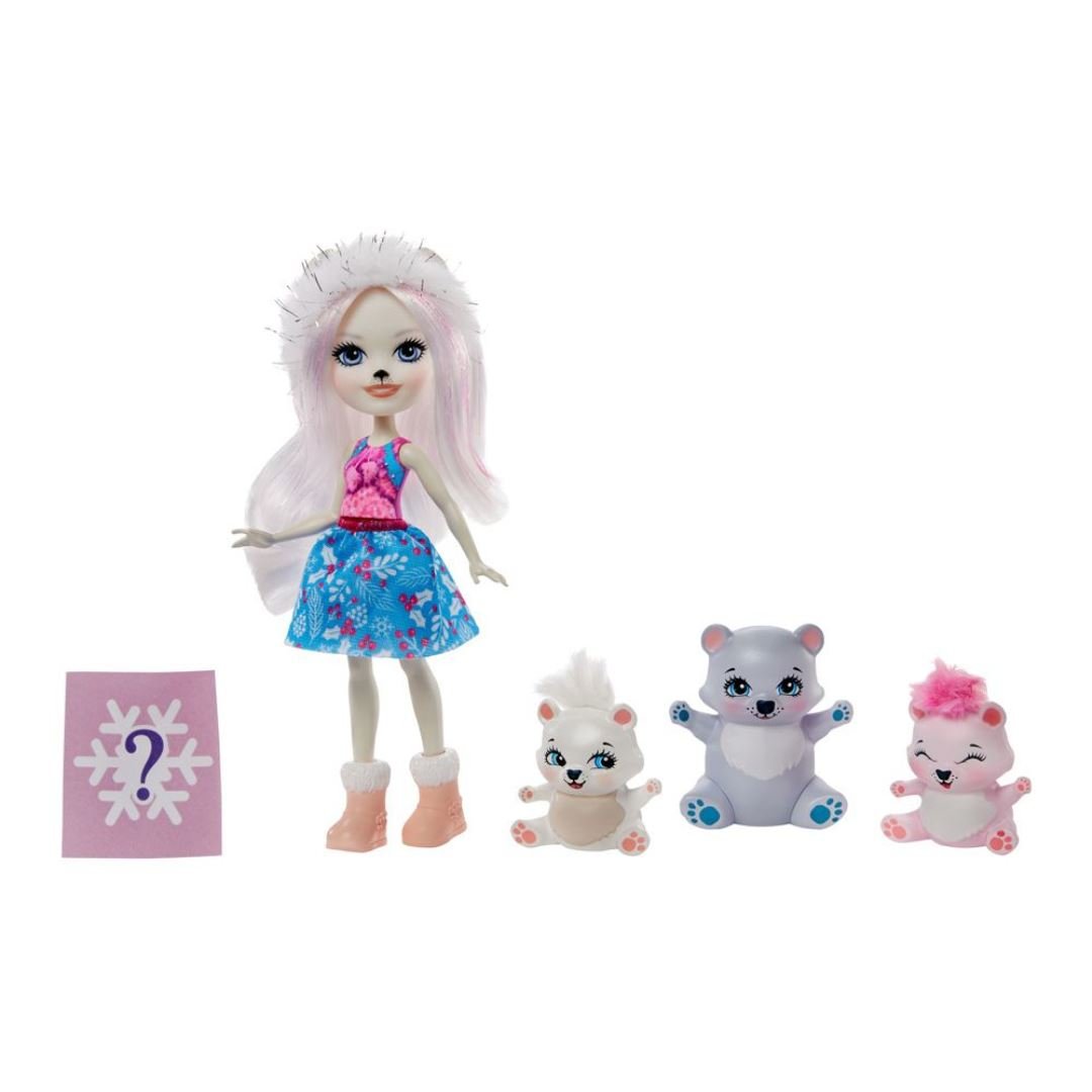 Поринь у світ чудес із чарівними дівчатками Enchantimals! В ігровий набір Родина Білої Ведмедиці Прістіни Enchantimals входить лялька Біла Ведмедиця Прістіна, 3 фігурки маленьких ведмежат - Глейсер, Дайвер і Паддл, та 1 містичний мішечок з 3 аксесуарами-ласощами всередині. Зимовий образ Прістіни зробить гру ще цікавішою. Фігурки маленьких ведмежаток також дуже милі. Ця родина обожнює плавати у льодяній воді та вчити інших як не змерзнути в прохолодному кліматі. Коли Ви відкриєте мішечок, то знайдете там 3 заморожені рибинки на паличці! Дітям сподобається розігрувати веселі історії з цією "зимовою" родиною. Кольори та аксесуари можуть відрізнятися. Збери усіх ляльок із серії, створи власний світ Enchantimals та розкажи свої чарівні історії про казкову дружбу.