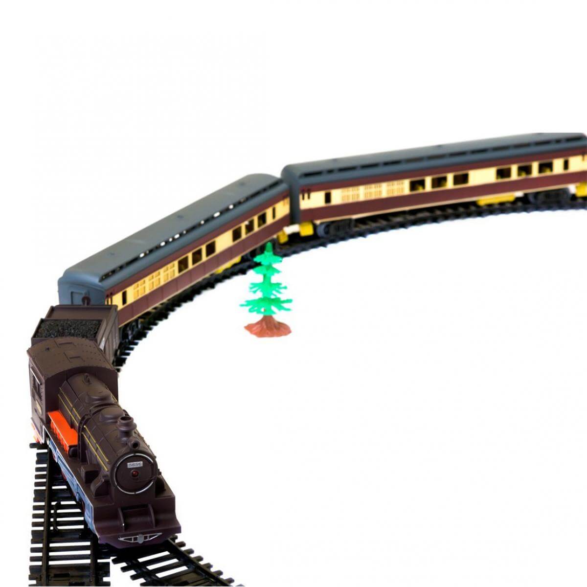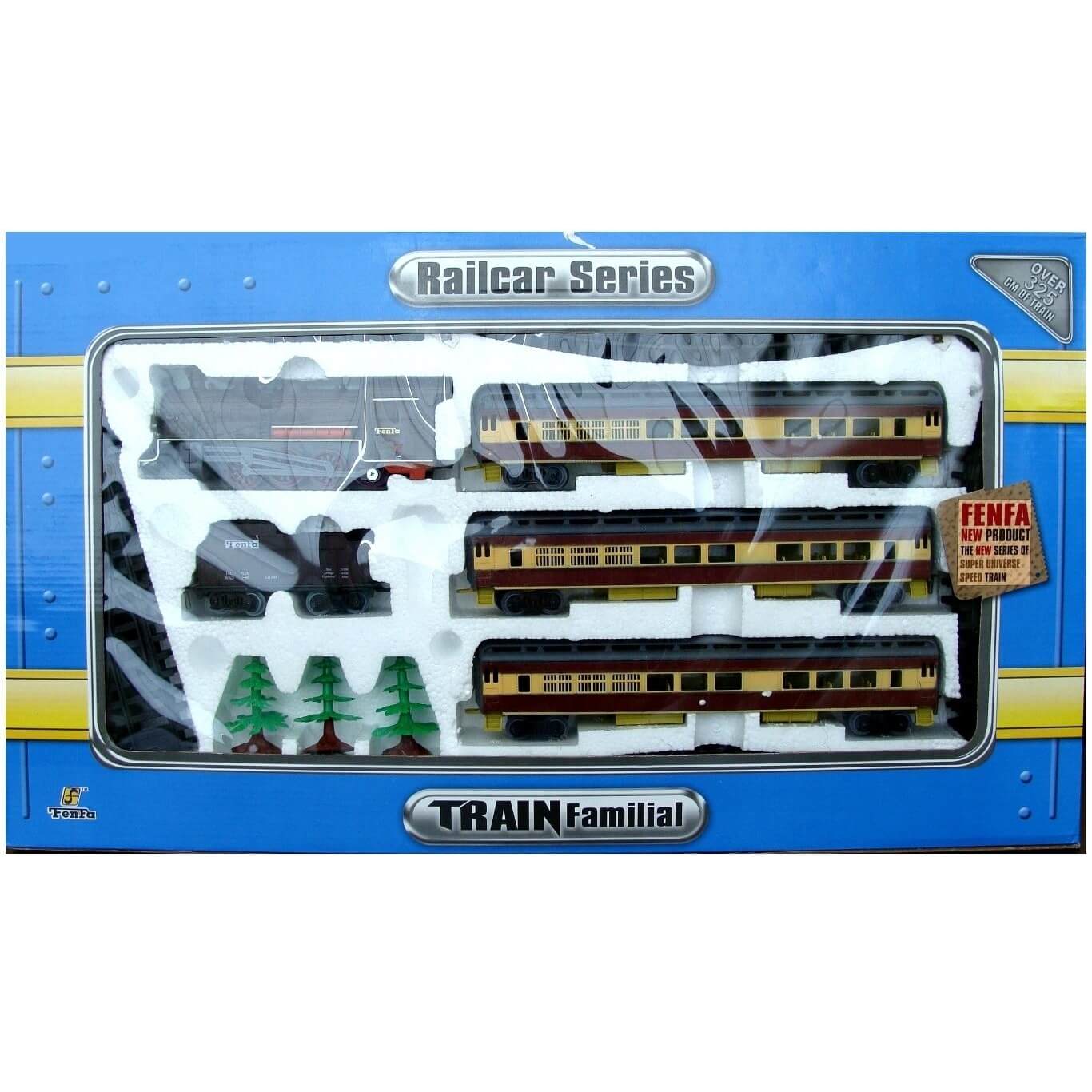 Ігровий набір "Пасажирський паровоз" зі світлом та звуком від Fenfa включає рейки, локомотив, два вагони, тематичні аксесуари. З рейок можна викласти п'ять різновидів траси довжиною 3,25 м та максимально можливим діаметром 2,4 м. Іграшковий паровоз виконаний у масштабі 1:87 до оригіналу. Довжина пасажирського вагону складає 28 см, локомотива - 19 см, вагона для вугілля - 11,5 см. Для роботи транспорту потрібні 2 батарейки АА 1.5 В.