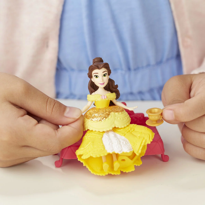 Набір, що складається з мініатюрної лялечки та ігрової локації. Представлений у двох варіаціях - з принцесою Бель та Білосніжкою. Іграшка виготовлена з міцного та безпечного пластика. В комплекті з фігуркою Бель йде бібліотека, умебльована чарівною шафою з книжками, лавкою з різьбленими ніжками. Для гри з Білосніжкою є куточок лісової хижки з віконечком, піччю, дверима, а також маленький вихованець - зайчик. Гра з ляльками розвиває уяву, дрібну моторику, мовлення. Рекомендовано дівчаткам старше 3-х років.