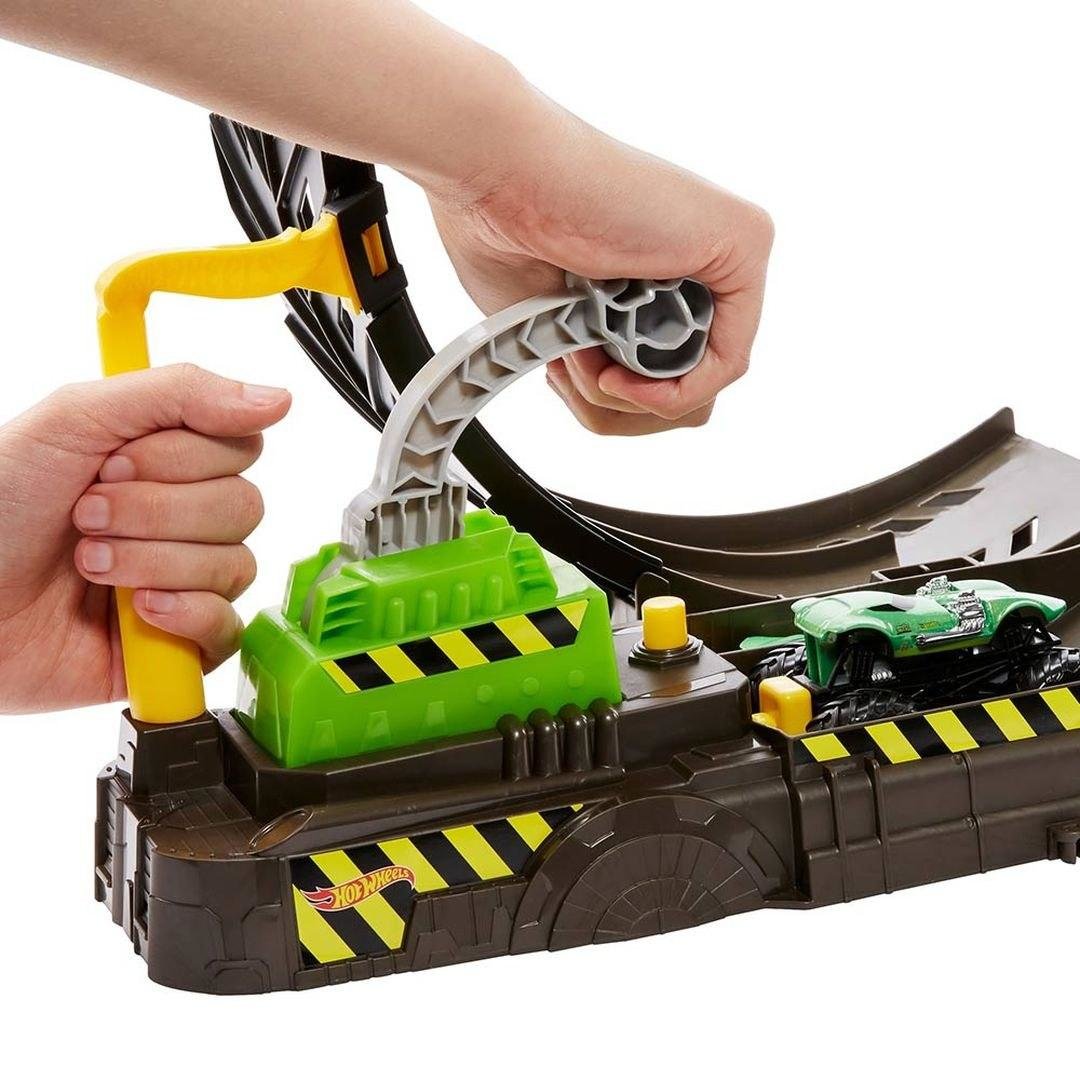Карколомна гоночна траса у вигляді великої петлі - справжнє випробування для шанувальників швидкості! Ігровий набір Hot Wheels Monster Trucks підходить для дітей від 4 до 8 років. Джип запускається натисканням кнопки, а пристрій з важелем допомагає розвинути швидкість. Всі деталі іграшки зроблено з якісного, міцного та безпечного для дітей пластику, який витримує велике навантаження. До набору Монстро-петля входять: 2 машинки, деталі треку, пусковий пристрій з важелем, контейнер для приземлення автівок. Набір сумісний з іншими треками Hot Wheels. Розвиває спритність, дрібну моторику, логічне мислення, просторове сприйняття, увагу, цілеспрямованість. Артикул 795471.