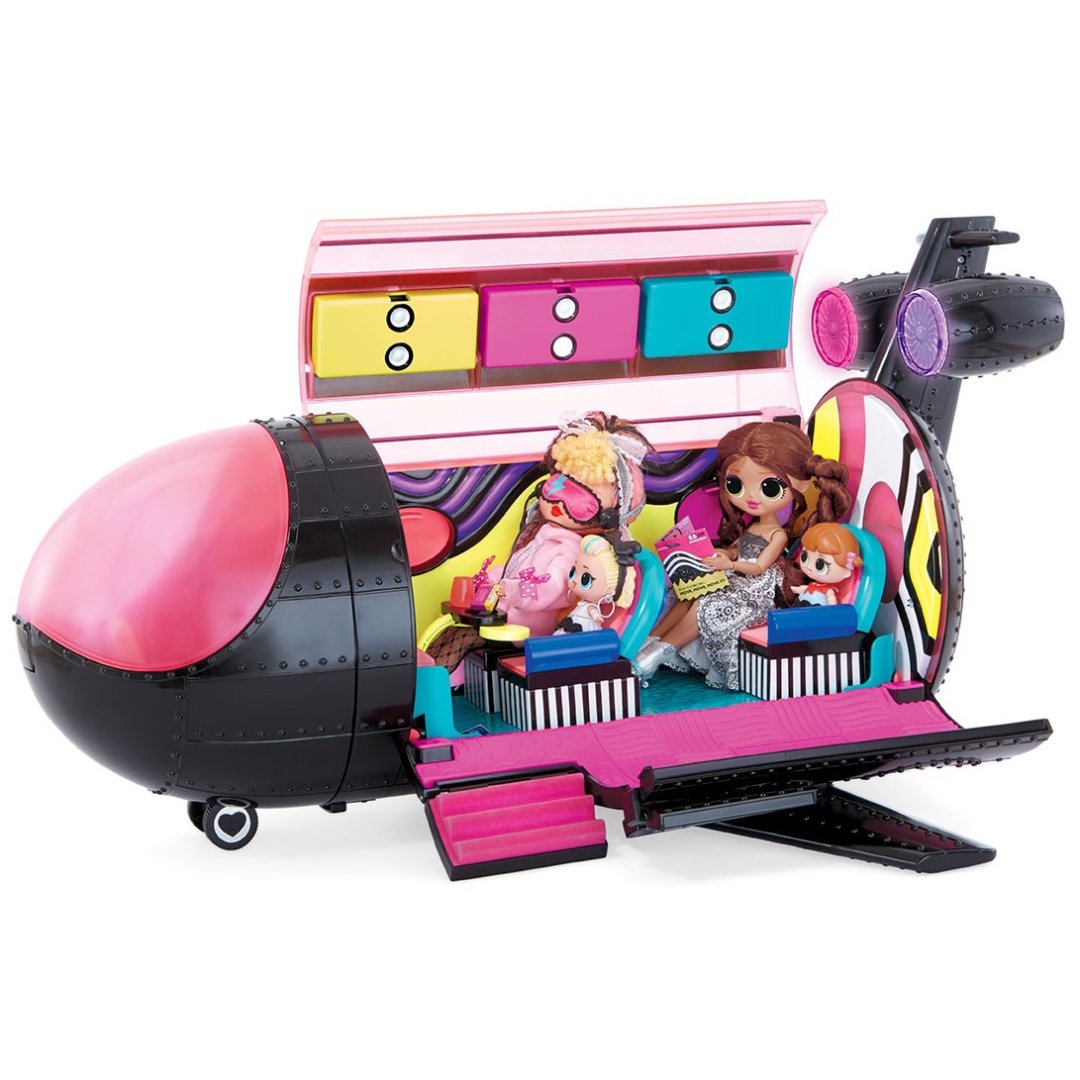 Зустрічайте перший літак для лялечок LOL Surprise! На Вас чекають 4 ігрові зони та безліч аксесуарів. Багатофункціональний літак-трансформер стане відмінним подарунком на будь-яке свято. Це ігровий набір 4-в-1 - кабіна звукозапису, автомобіль для подорожей, студія звукозапису з мікрофоном, де лялечки можуть записувати нові хіти і, звичайно ж, великий літак.