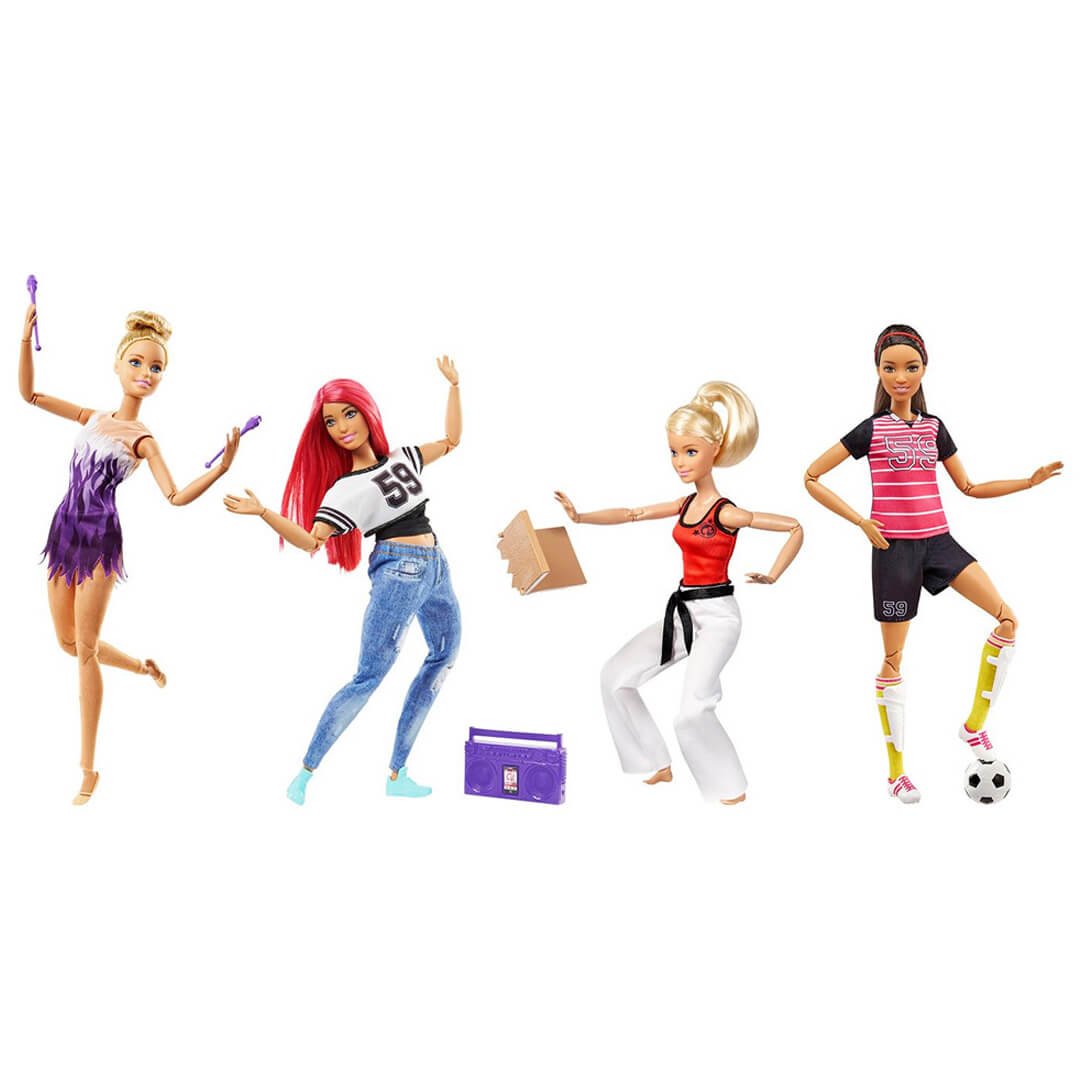 Ким хоче стати дитина, коли виросте? Може спортсменкою? У неї є шанс спробувати себе у професії ще в дитинстві. Ігровий набір “Спортсменка Барбі” створено для дітей від 3-х років. Серія представлена чотирма тематичними комплектами. В залежності від моделі Барбі може бути футболісткою, гімнасткою, каратисткою чи скейтбордисткою. До комплекту, крім ляльки, входять тематичні аксесуари. Лялька заввишки 29 см виготовлена з якісного міцного пластику. Має звичайні пропорції жіночого тіла та унікальні риси обличчя. У Барбі розкішне довге волосся та виразні очі. Руки і ноги ляльки рухаються, голова повертається. Кожен комплект продається окремо. Гра з ляльками Barbie розвиває естетичний смак та фантазію. Вчить дитину піклуватися, поважати спорт. Артикул 792366.