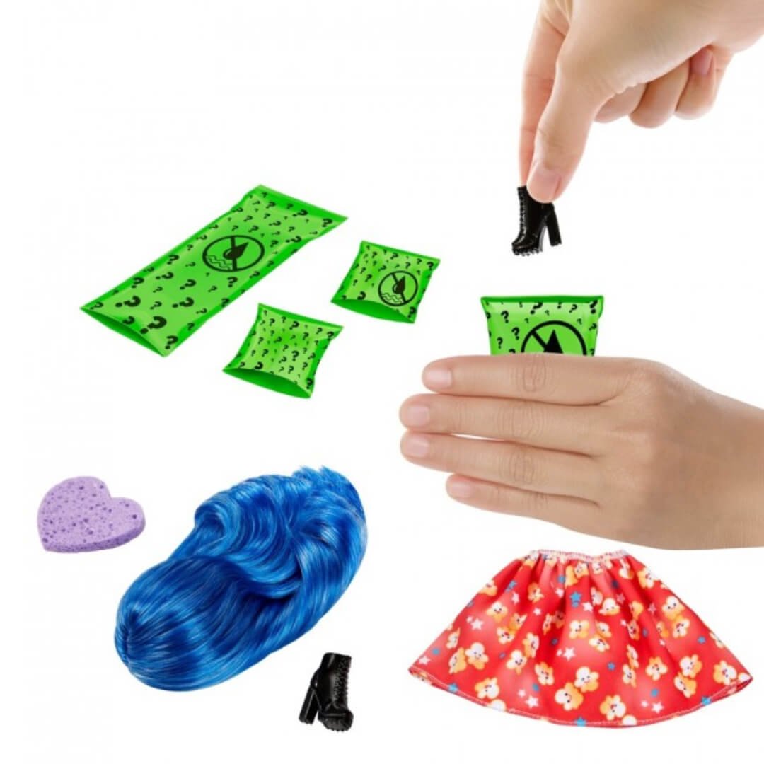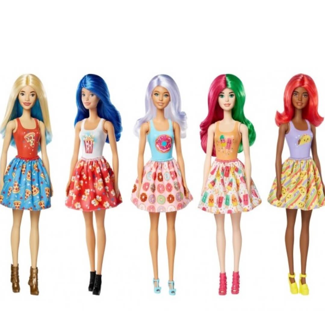 У “Маттел Барбі” з’явилася нова “гурманська” колекція. Друга серія “Кольорового перевтілення” представлена п’ятьма ляльками-сюрпризами. Ігровий набір створено для дітей від 3-х років. До комплекту входить бузкова лялька заввишки 29 см та чотири пакунки. В чому секрет іграшки? Всі ляльки серії мають різний колір шкіри, очей та волосся. Але до перевтілення вони всі однакові - повністю бузкові. Щоб побачити, яка лялечка вам дісталася, необхідно в порожній після розпаковки тубус налити теплої води, і занурити туди Барбі. Закрийте і покрутіть ємність. Коли вода стане бузковою, лялечку можна діставати. Після висихання на неї слід одягти перуку, спідницю та туфлі - речі, що знаходяться в пакунках. На бажання вигляд дівчини можна змінювати, експерементуючи з холодною та теплою водою. У наборі є для цього спеціальна губка. Ще один цікавий нюанс - купальники та спідниці лялечок прикрашені food-принтами. Гра з ляльками Barbie розвиває естетичний смак та фантазію. Вчить дитину піклуватися. Артикул 795744.