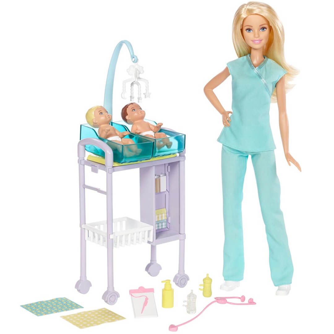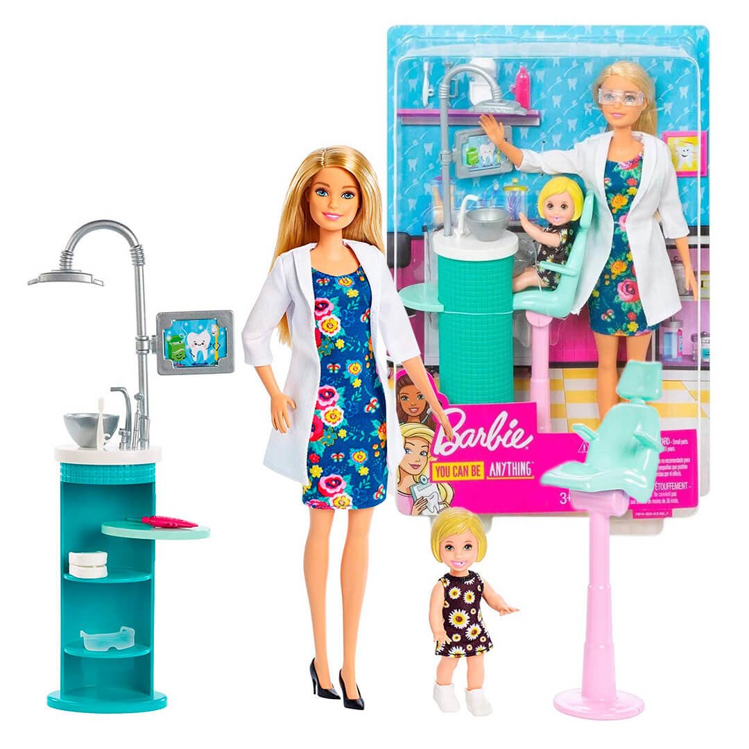 Оберіть професію для Барбі! Ігрові набори створено для дітей від 3-х років. З серією “Улюблена професія” дівчина спробує себе у ролі педіатра, виховательки, вчительки музики, стоматолога, пташниці чи бджоляра. Комплектація та вигляд Барбі залежать від теми набору. Кожен сет продається окремо. Синьоока білявка у блакитному брючному костюмі - педіатр. Вона спостерігає за почуттям двох новонароджених немовлят. Вихователь знайомить дітей з геометричними фігурами. До її набору входить навчально-ігровий куточок та дві ляльки - дорослої дівчини та малюка. Руда Барбі-птахівниця одягнена у рожеву футболку, джинсові шорти та червоні чоботи. Її завдання - годувати курчат. До комплекту “Вчителька музики” входять: стойка для зберігання інструментів, пюпітр, дві скрипки з футлярами, труба, флейта та дві ляльки. Вчителька одягнена у білу блузку та синю спідницю-плісе. У маленької учениці червона кофтинка, чорно-біла спідниця та рожеві черевики. У бджоляра є вулик з висувним стільником. Дівчина одягнена в захисний костюм. До комплекту стоматолога входить медична установка з кріслом, лялька-лікар у білому халаті та маленька пацієнтка. Гра з ляльками Barbie розвиває естетичний смак та фантазію. Вчить дитину піклуватися, дружити та спілкуватися. Артикул 794553.