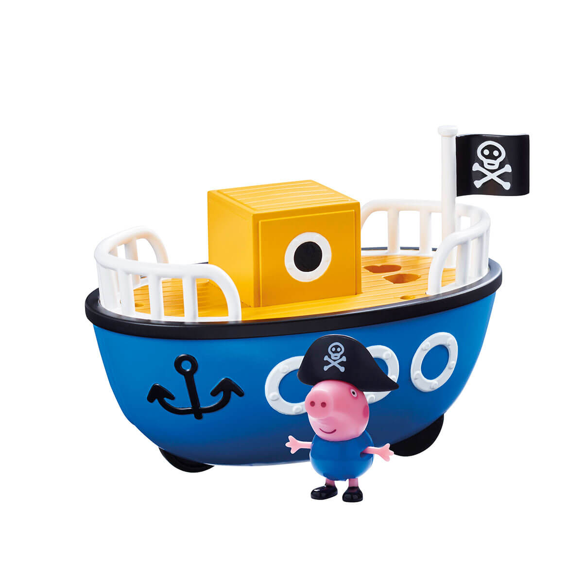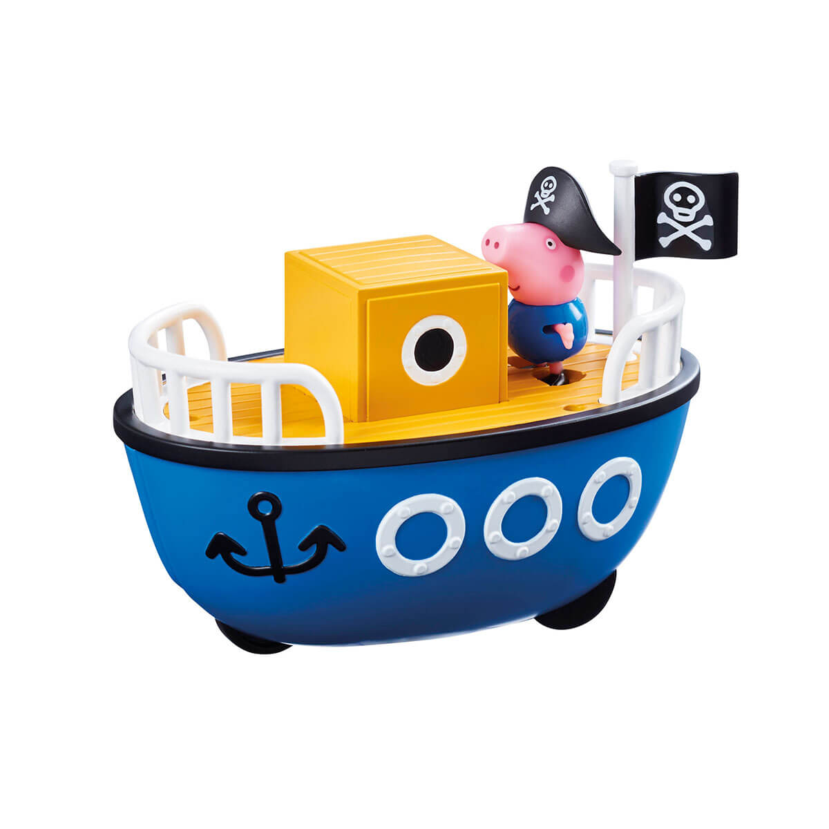 Зустрічайте героїв популярного мультфільму "Свинка Пеппа"! Хочеш покататися на піратському кораблику разом з Джорджем? Тоді стрибай на борт - і повний вперед! Сам кораблик оснащений коліщатками, так що малюк може катати його по поверхні. Фігурка може сидіти, стояти, рухати ручками і ніжками. Це чудовий подарунок будь-якому малюкові. Добрий світ Свинки Пеппі! У наборі: кораблик, фігурка Джорджа. За допомогою ігрового набору дитина зможе обіграти життя героїв мультика, приміряти на себе нові ролі, навчитися новим навичкам. Граючи з набором Peppa, Ваш малюк зможе чіткіше усвідомити, що він хоче побачити, що хоче робити і ким він хоче бути, коли виросте!