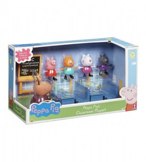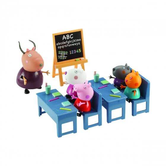 Зустрічайте героїв популярного мультфільму "Свинка Пеппа". Хочеш вчитися в одному класі з Пеппою? Тоді занімай місце за партою і давай вчитися разом! Фігурки Пеппи, її однокласників і вчительки мадам Газель можуть сидіти, стояти, рухати ручками і ніжками. У наборі: фігурки мадам Газель, Пеппи, С'юзі, Кенді, Денні, 2 парти, 2 лавки, шкільна дошка. За допомогою такого набору діти будуть отримувати нові знання і навички спілкування, розвивати кругозір і уяву.