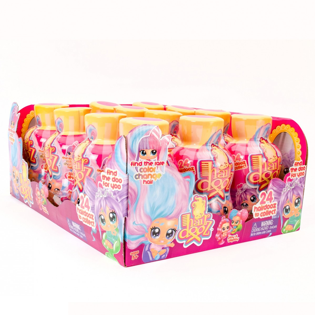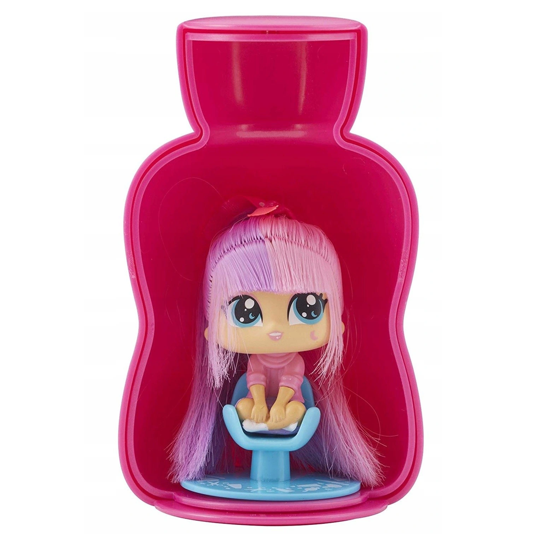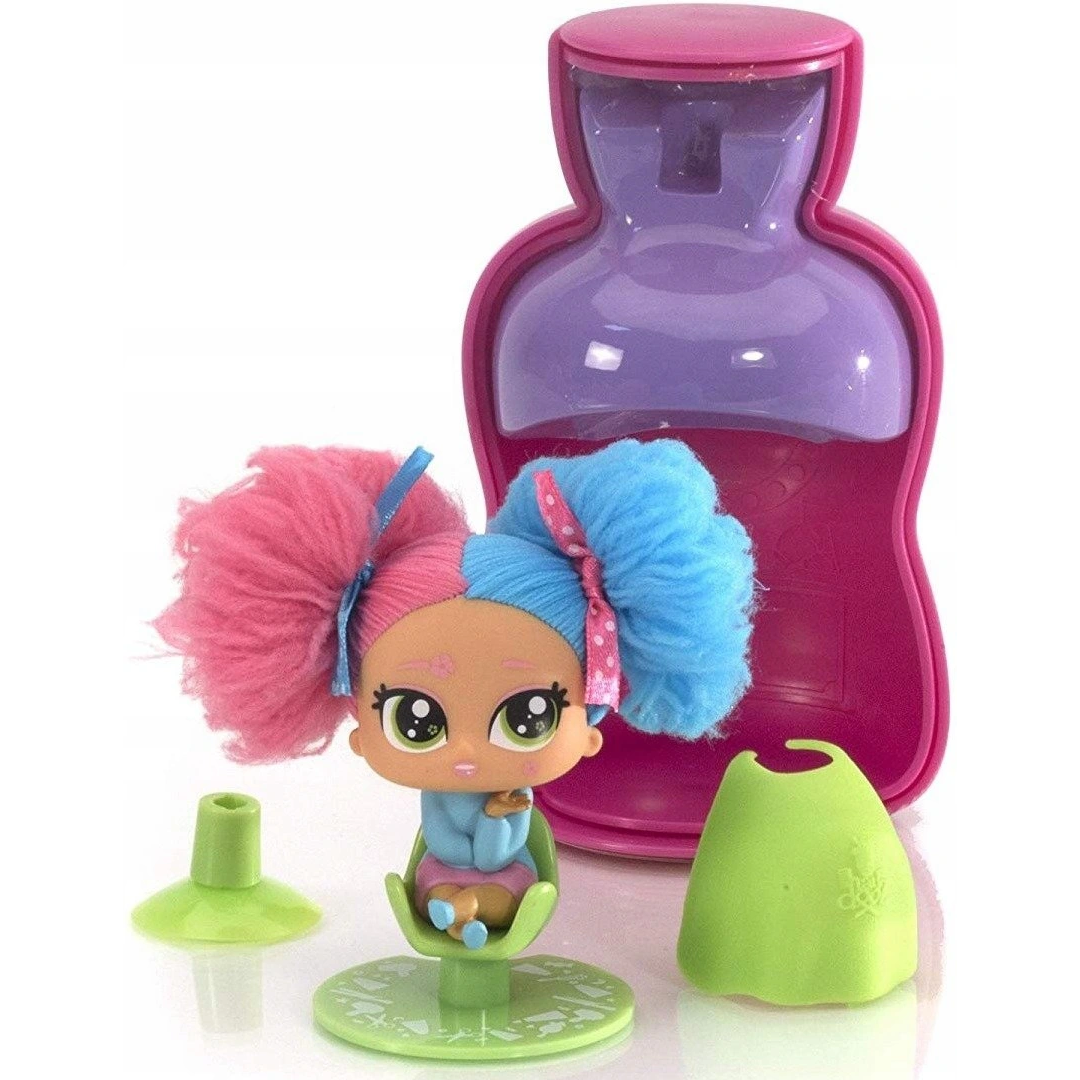 Ігровий набір "Хейр Дуз" оцінять дівчата, що люблять вигадувати і втілювати модні образи. У кожній пляшці-капсулі знаходяться яскраві персонажі з індивідуальним стилем і неймовірним волоссям. У набір-сюрприз входять: лялька заввишки 14,5 см, стільчик, перукарська накидка, присмоктувач для гладких поверхонь, гід по колекції. Яскрава капсула, схожа на пляшку з-під шампуню, стане особистим салоном краси вашої дівчинки. Волосся лялечки можна укладати в зачіски. Його колір можна змінювати. Набір рекомендований дітям старше 5 років, розвиває креативність, естетичний смак.