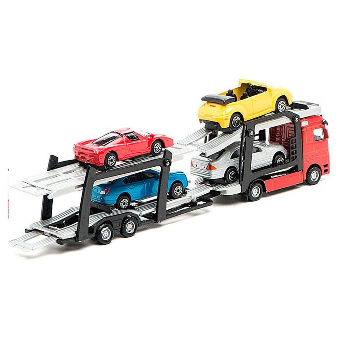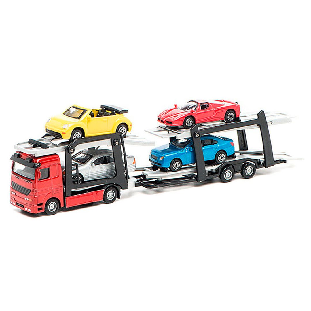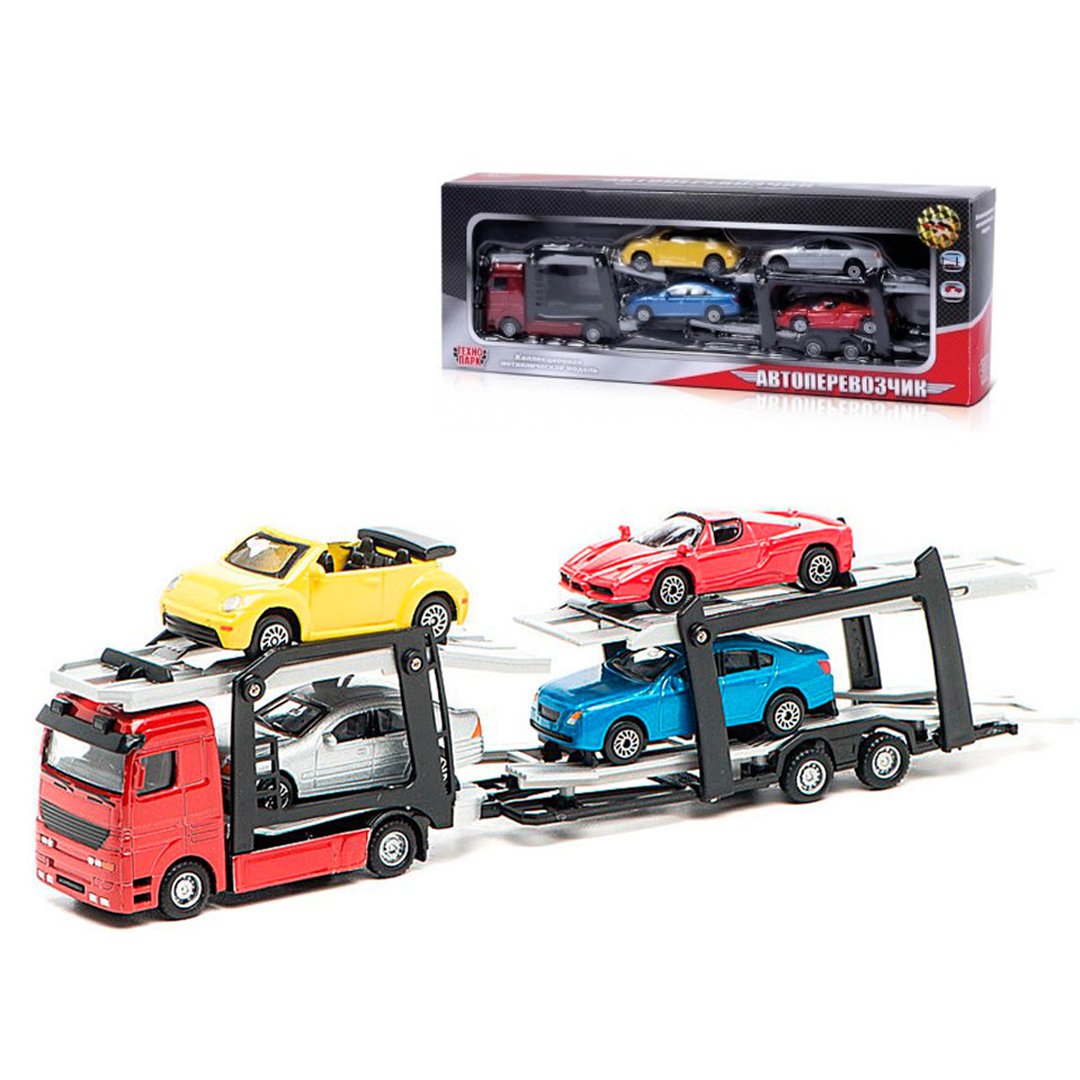 Малеча полюбляє гратися з машинками “Технопарк” і збирає цілі колекції! Тепер, щоб взяти у гру всі автівки одночасно, потрібен автоперевізник. Іграшкові машинки у наборі яскраві та дуже схожі на справжні, тому так подобаються і дітям, і дорослим. Швидкі гумові колеса миттю доправлять вантаж за призначенням, а міцній металевій кабіні не зашкодять будь-які дорожньо-транспортні пригоди. Платформи з якісного пластику здатні транспортувати цілих 4 автівки габаритами 7 х 2 см кожна. Габарити перевізника - 26 х 5,5 х 4 см. Розміри першої платформи - 11 см, другої - 15 см. Машинки для дітей розвивають уяву, кмітливість, просторову орієнтацію, дрібну моторику. Іграшка рекомендована дітям від 5-ти років. Артикул 800870.
