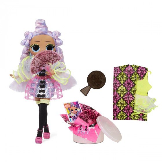 В ігровий набір входить: модна лялька L.O.L. Surprise! серії O.M.G. Dance, ліхтарик, одяг, коробка для капелюшка, сережки, вішалки для одягу, гребінець для волосся, чохли для одягу, підставка для ляльки, аксесуари, коробка-гардероб.
