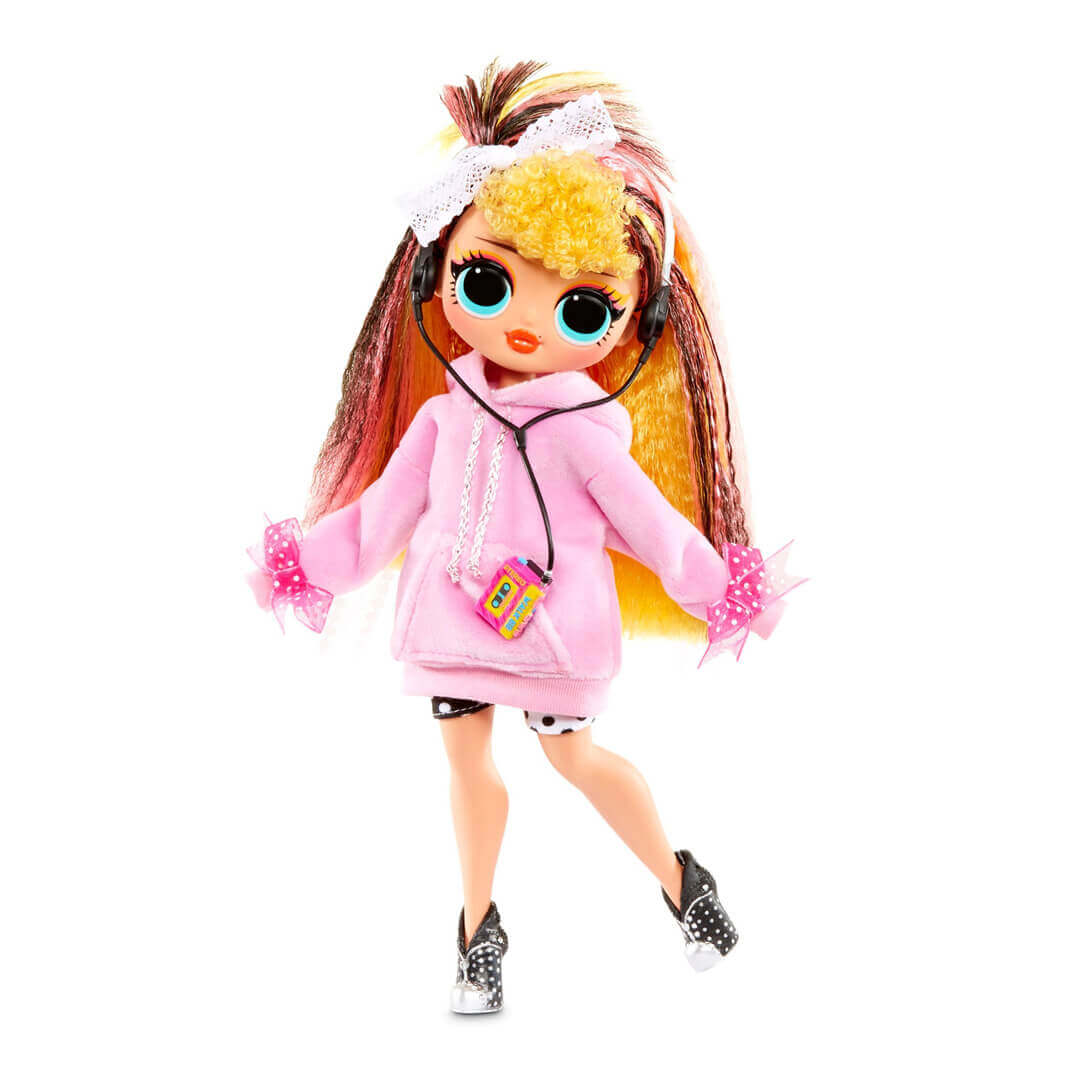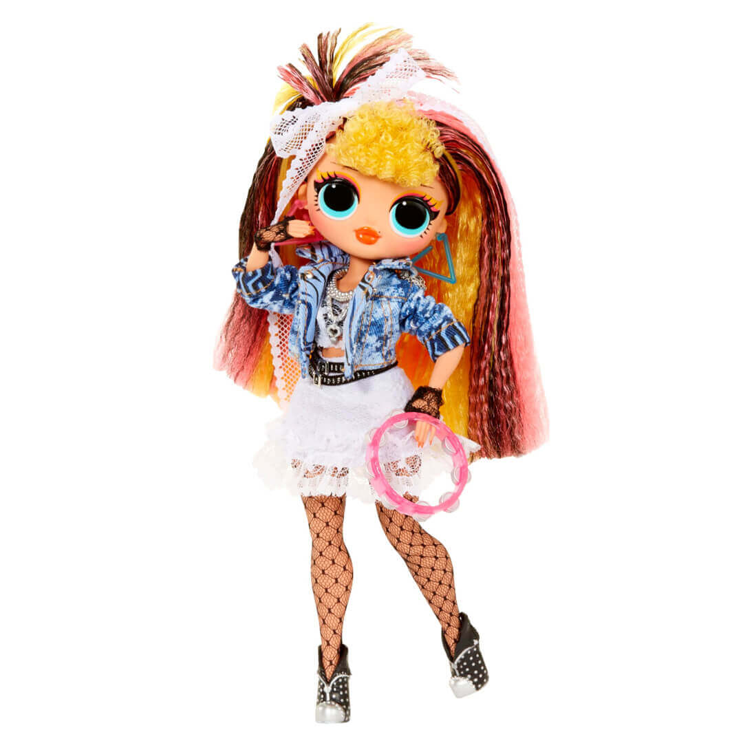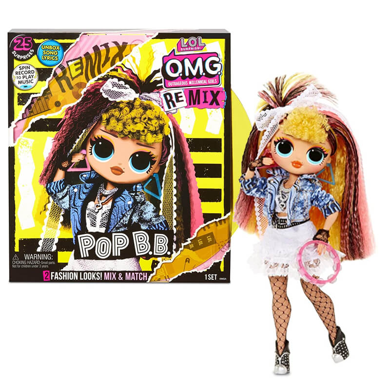 Шалені кралечки ЛОЛ знов підготували сюрприз. Цього разу - музичний! Якщо хочете на круту вечірку, збирайте всі набори серії “Ремікс”. До кожного комплекту входить аж 25 сюрпризів! У коробці є лялька, пакунок з взуттям, комплекти одягу з вішалками та чохлами, музичний інструмент, гребінець, аксесуари. Лялечка заввишки 27 см має рухливі руки, великі бірюзові очі та розкішне кучеряве волосся з кольоровими пасмами. Вона - фізичне втілення музичного стилю диско: одягнена у коротку джинсову куртку, міні-спідницю, сітчасті панчохи. На ногах - чорні черевики з сріблястим миском. Крім святкового вбрання, в пакунку є ще один комплект одягу - буденний. Для концертних виступів у Диско-леді є бубон. А ще в ігровому наборі ви знайдете стікер зі словами та справжню платівку. Програвачем служить коробка. Якщо вставити платівку в неї, залунає уривок пісеньки. Хочете почути всю пісеньку-ремікс? Збирайте колекцію! Тоді ж у вас будуть всі стікери зі словами - з’явиться можливість підспівувати іншим дівчаткам Remix. Іграшку створено для дітей від 4-х років. Гра з ляльками LOL Surprise розвиває фантазію, естетичний смак. Артикул 797422.
