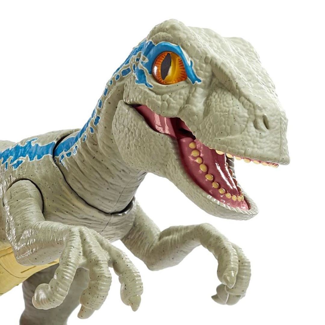 Стань частиною світу юрського періоду та приготуйся до пригод! Пригадай маленьку Блю на її перших тренуваннях з Оуеном. Якщо провести рукою по її холці - вона відреагує, нахилившись та відтворюючи один з понад 10 звукових ефектів. Споглядай за рухами динозаврика Блю: повороти шиї, рухи зі сторони в сторону, відкривання та закривання щелепи. Завдяки артикуляції у шиї, плечах, хвості та задніх лапах, грати з Блю та відтворювати моменти з фільму або вигадувати власні сюжети буде надзвичайно захопливо! Кольори та аксесуари можуть відрізнятися. Для дітей віком від 4 років.