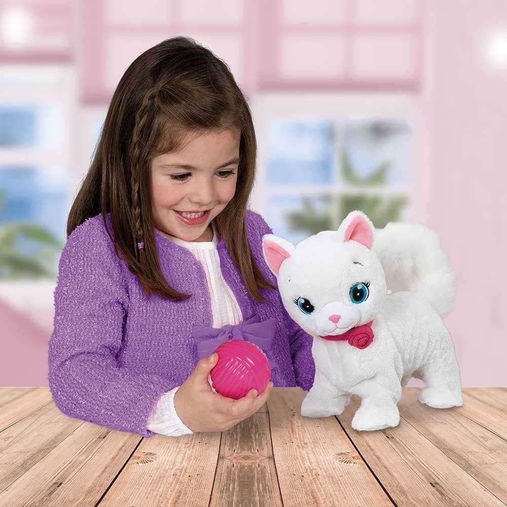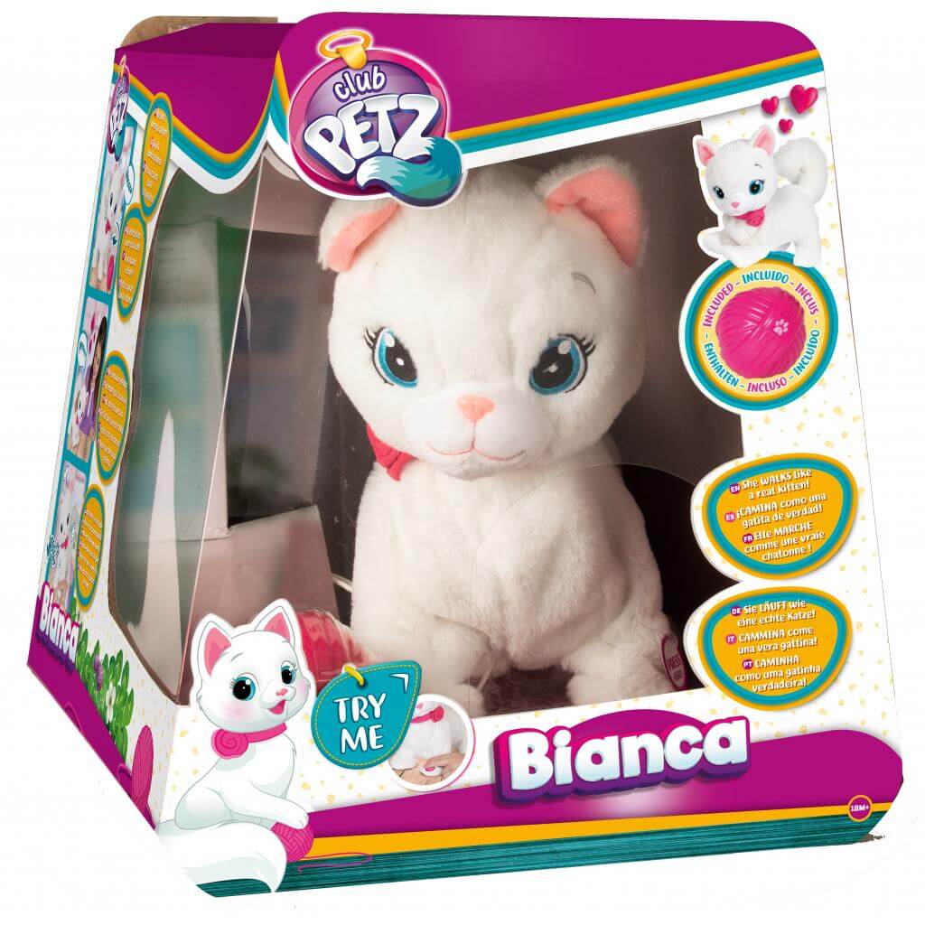 Пухнасте біле кошеня на ім'я Б'янка стане справжнім другом дитині, навчить любові та турботі про ближніх. Інтерактивна іграшка повертає голову на голос господаря, вигинає спинку та муркоче під час торкання. Кішка ходить на задніх лапах, ганяється за клубком, фиркає та сердиться, якщо доторкнутися до лівої лапки. Вона затихає та лякається, якщо підвищити голос. Іграшка виконана з якісного та приємного на дотик текстилю та пластику, має підвищену зносостійкість. Для роботи кішечки знадобляться 4 батарейки типу АА (входять до комплекту). Рекомендований вік - від 18-ти місяців.