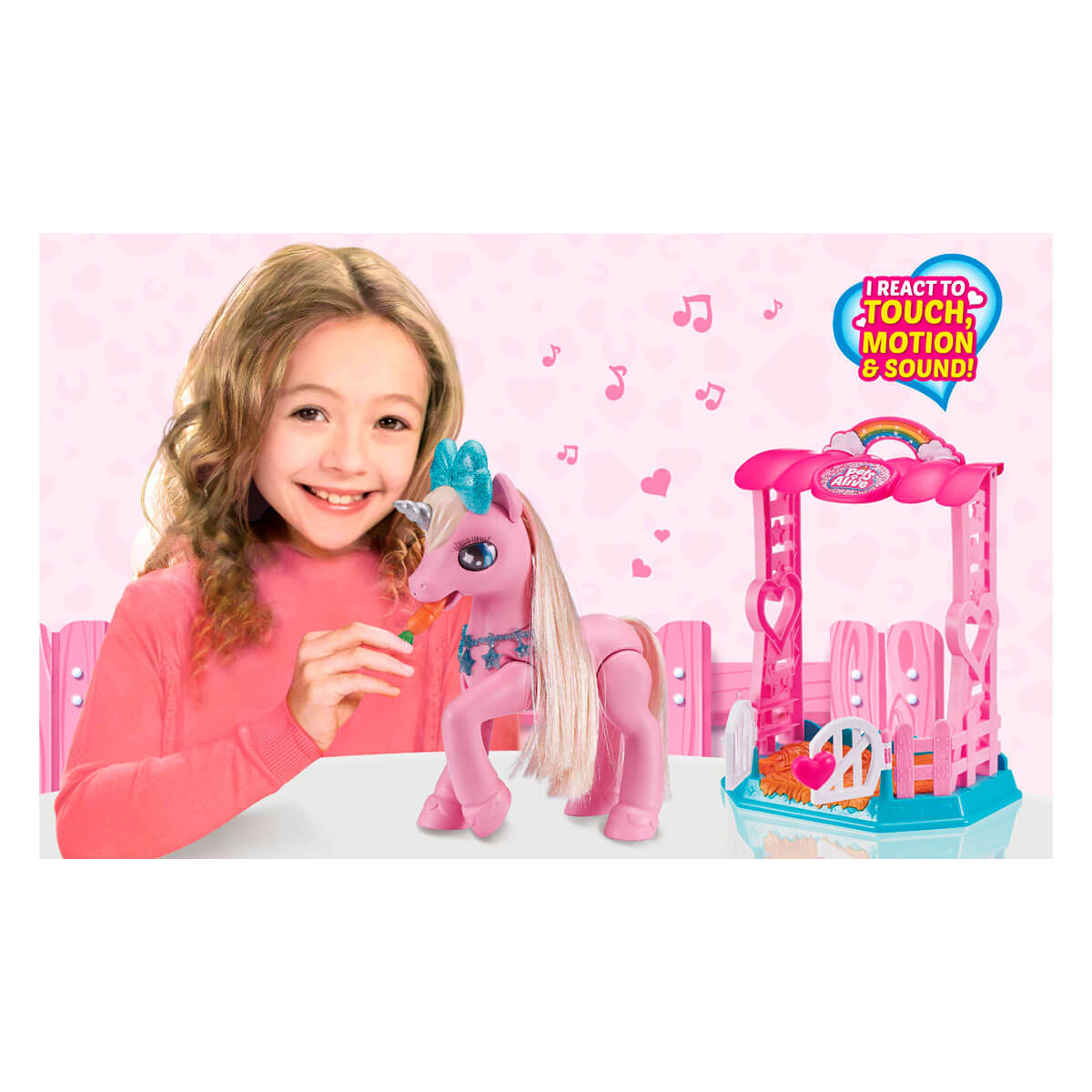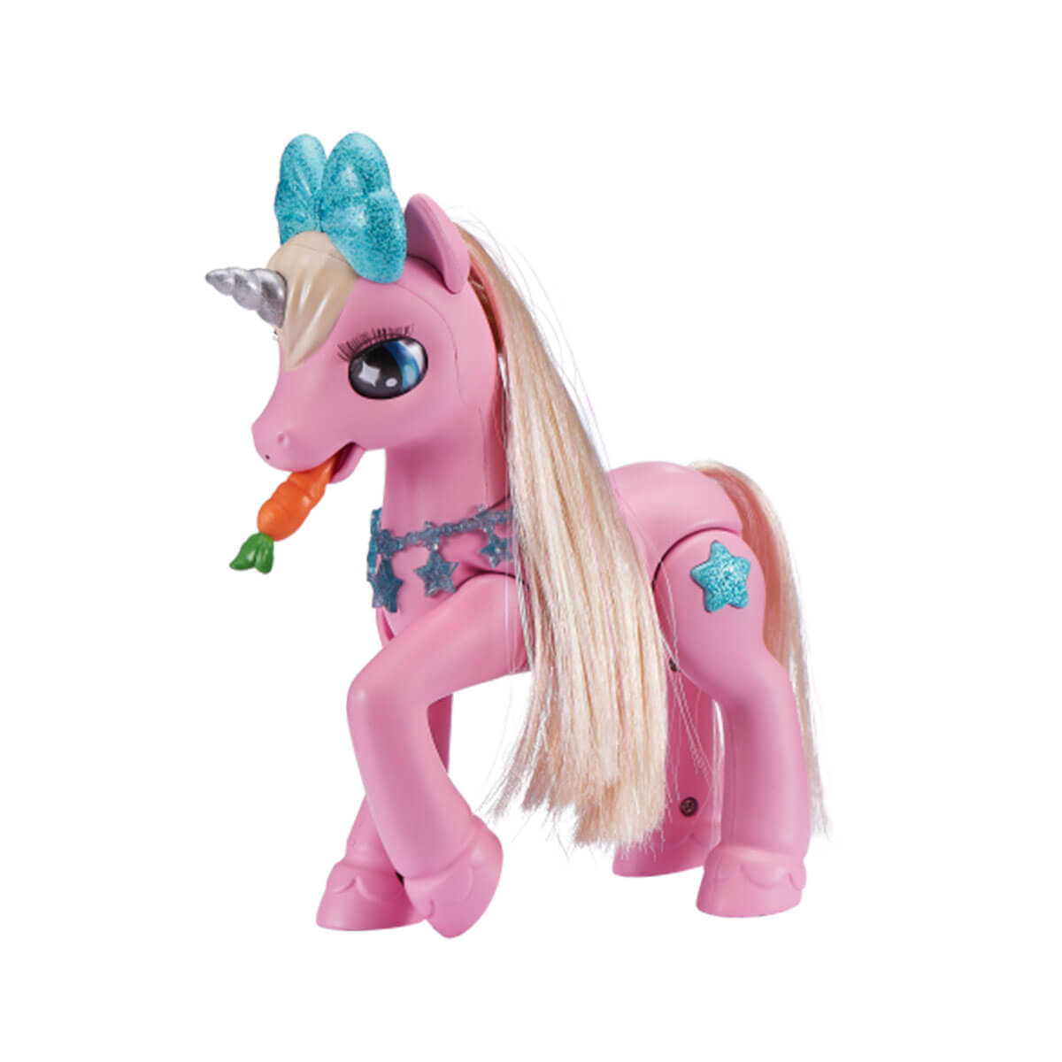 Іграшка реагує на дотик - погладьте носик єдинорога, і вона зіграє Вам пісеньку! Подуйте на Кораллочку - і вона поцілує Вас у відповідь! Кораллочка обожнює танцювати під власну музику і ласувати морквою. Ще її грива потребує регулярного догляду, тому не забувайте її розчісувати.