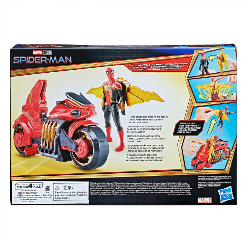 Супергерой поспішає на допомогу у своєму інтегрованому костюмі з крилами. З цією Фігуркою Spider-Man з мотоциклом 15 см діти зможуть розіграти будь-які сюжети, в яких супергерой повзає по стінам, стикається з новими викликами і ловить лиходіїв.
