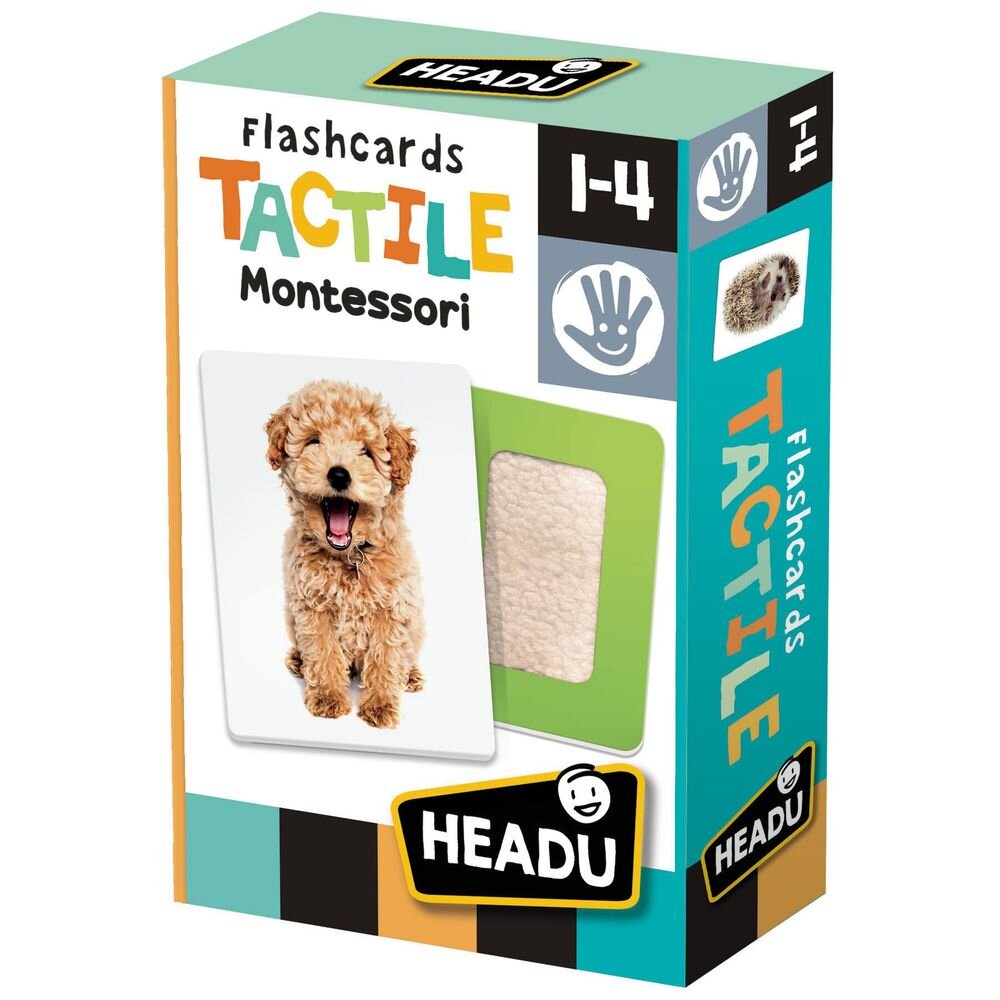 Вміст: 4 тактильні картки, 20 ілюстрованих карток, ілюстроване керівництво.
